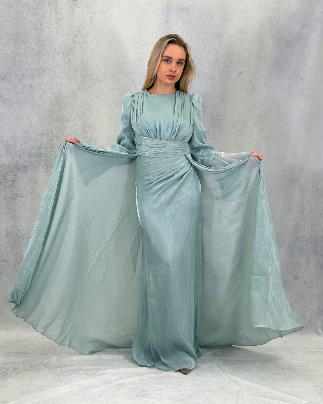 Özel Tasarım Pelerinli Abiye – Mint Yeşili