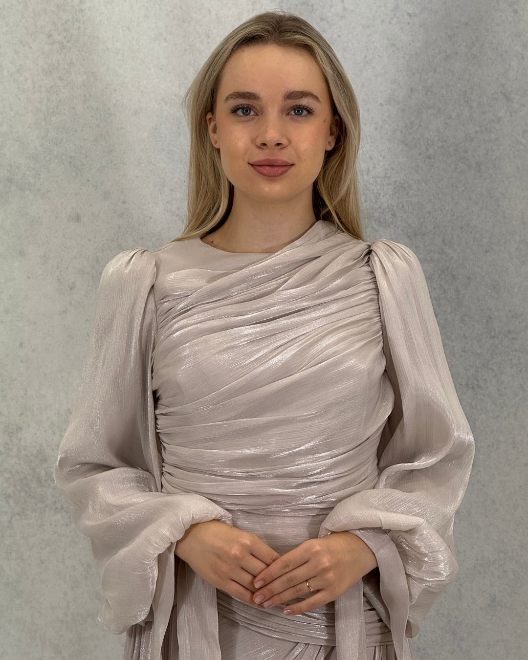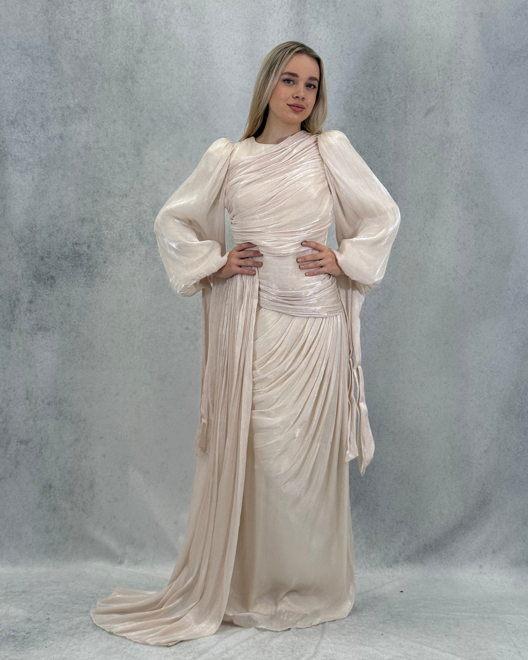 Aura Özel Tasarım Abiye Elbise – Açık Bej