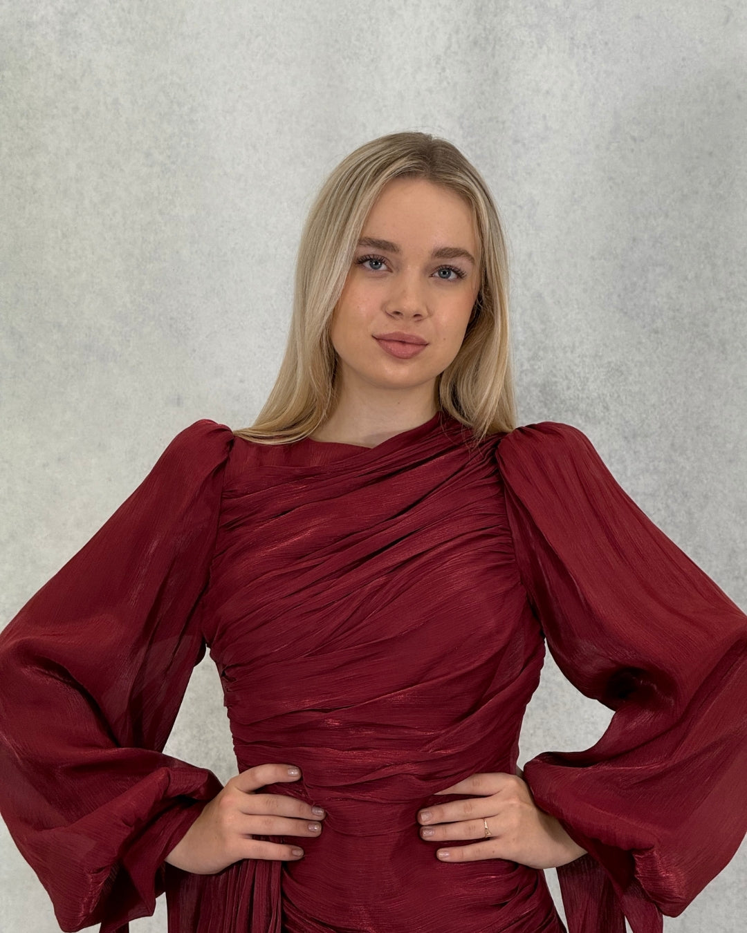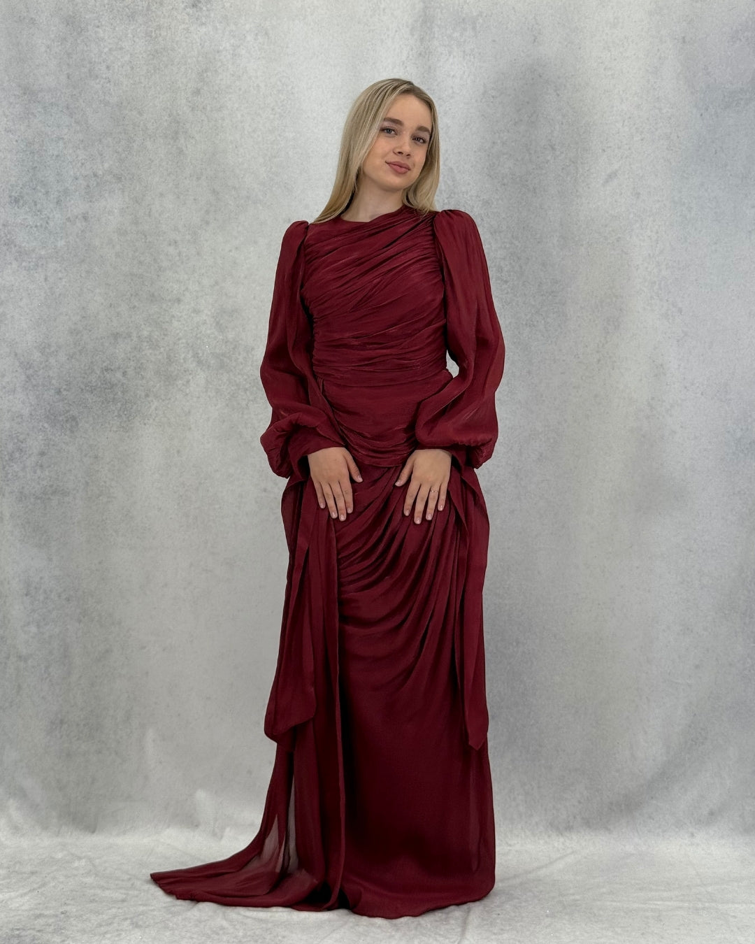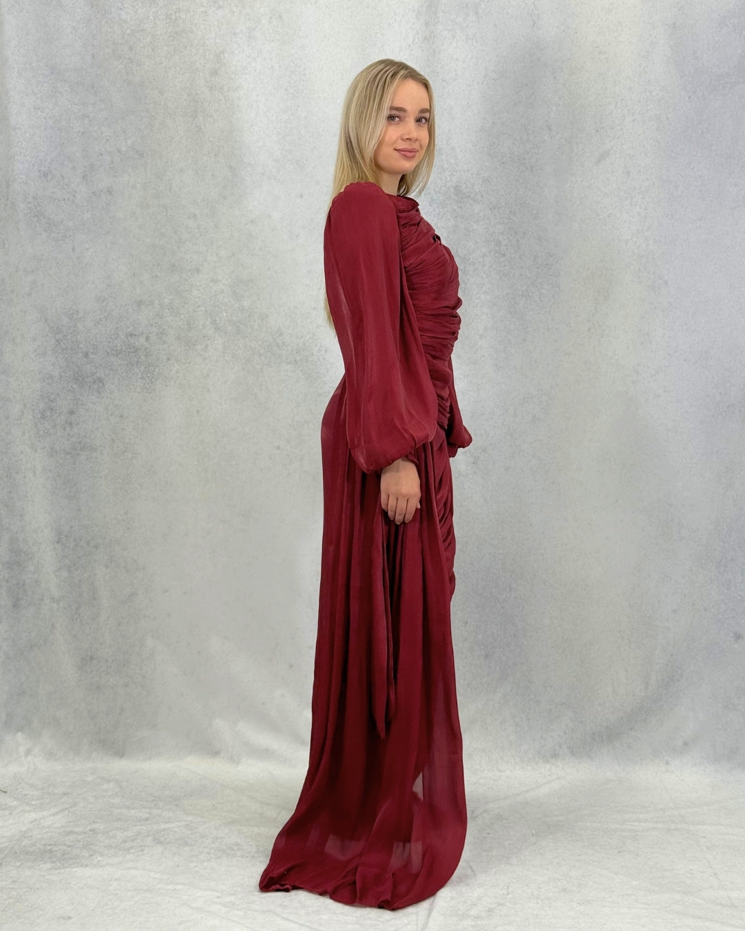 Aura Özel Tasarım Abiye Elbise – Koyu Kırmızı