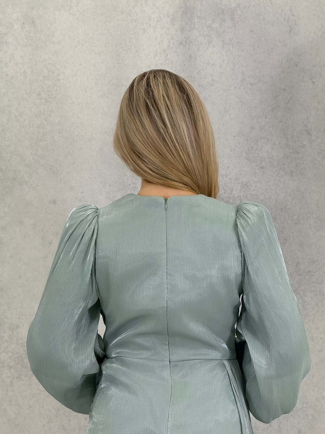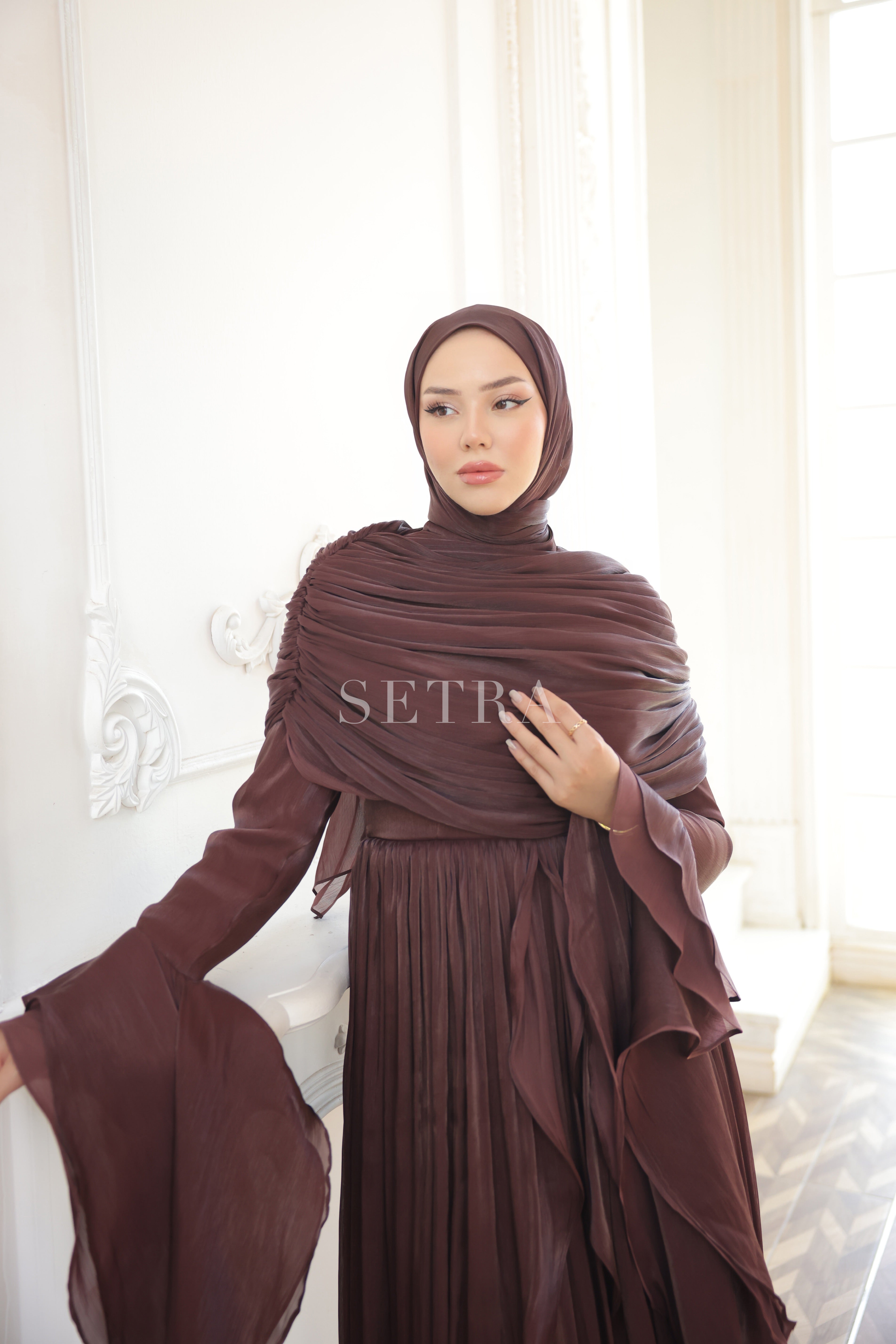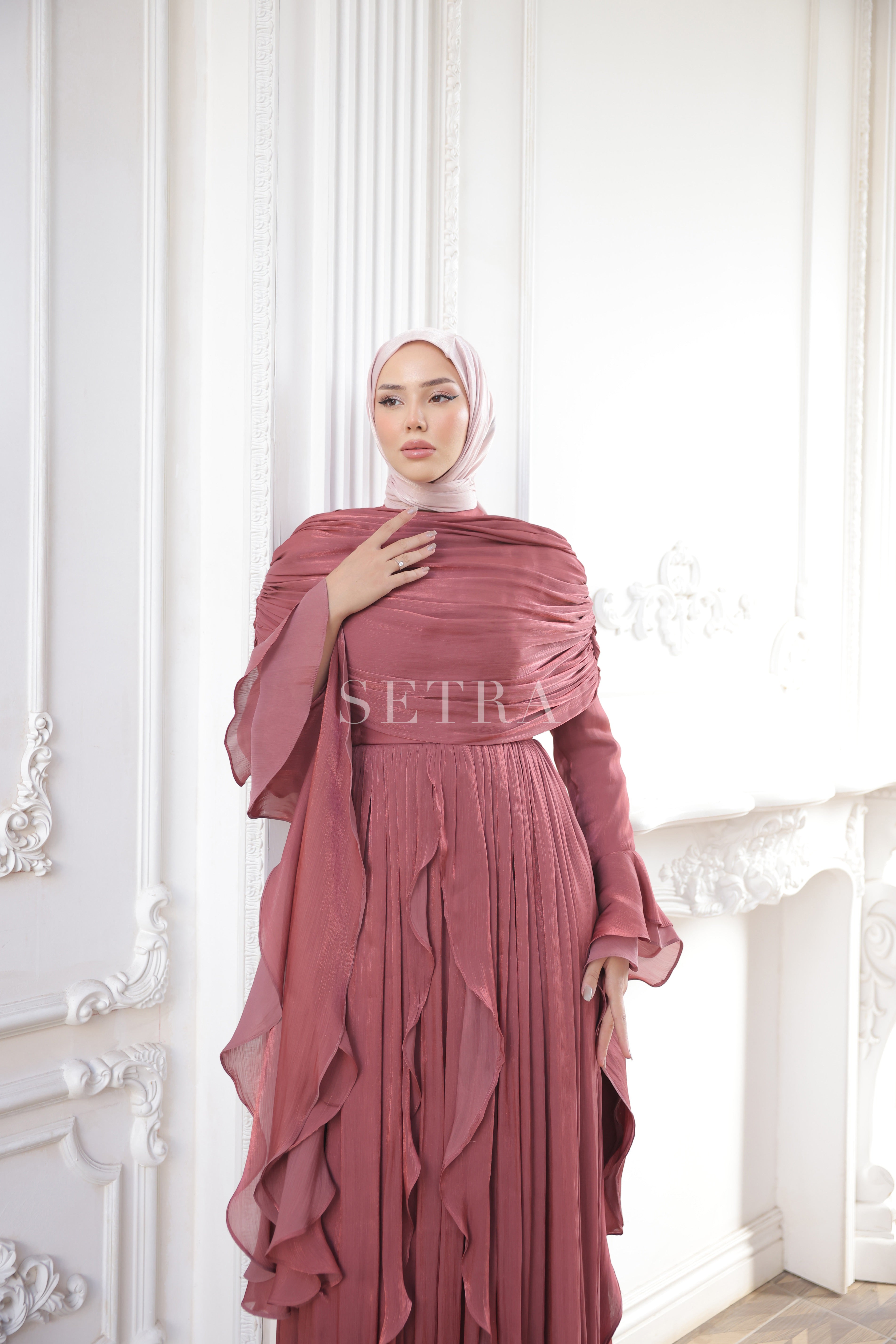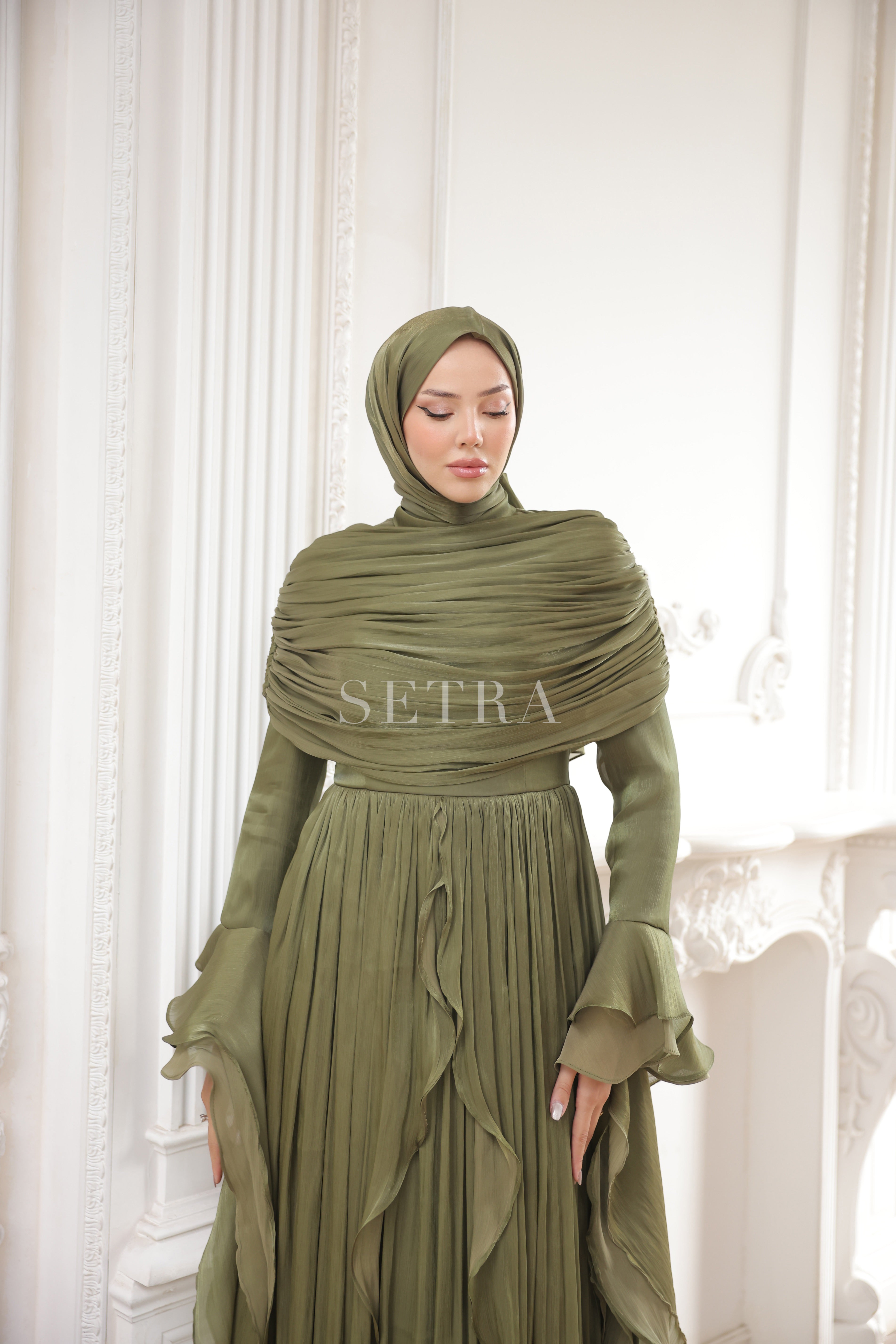 Taş Detaylı Pileli Tesettür Abiye Elbise