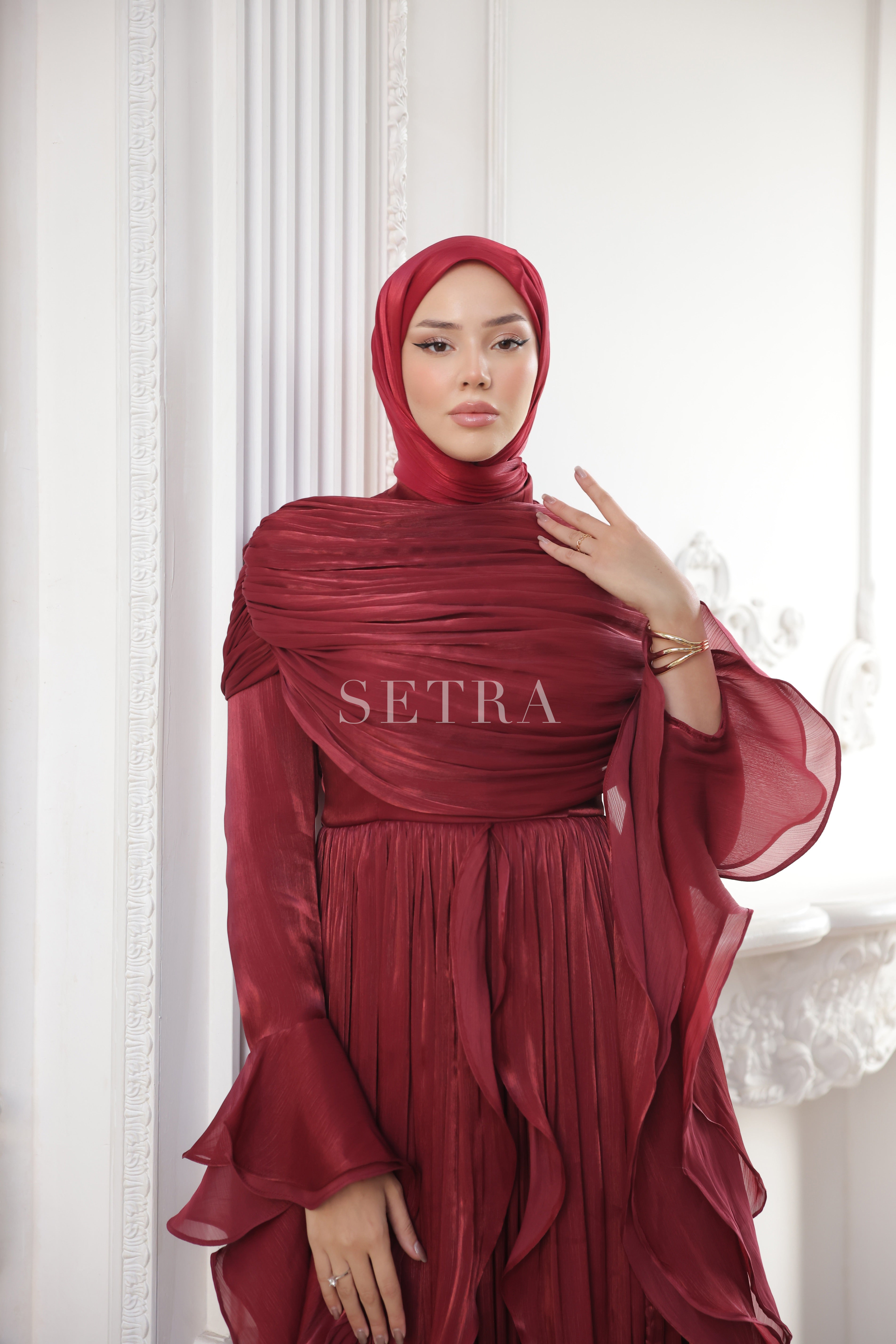 Özel Tasarım Pelerinli Abiye – Koyu Kırmızı