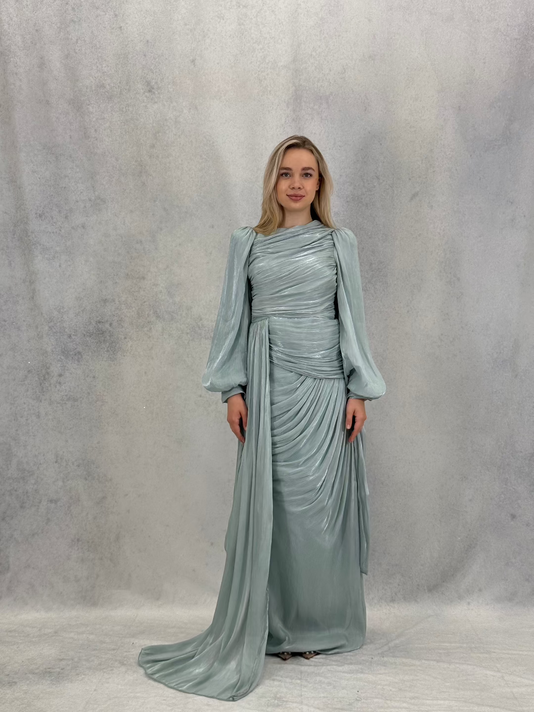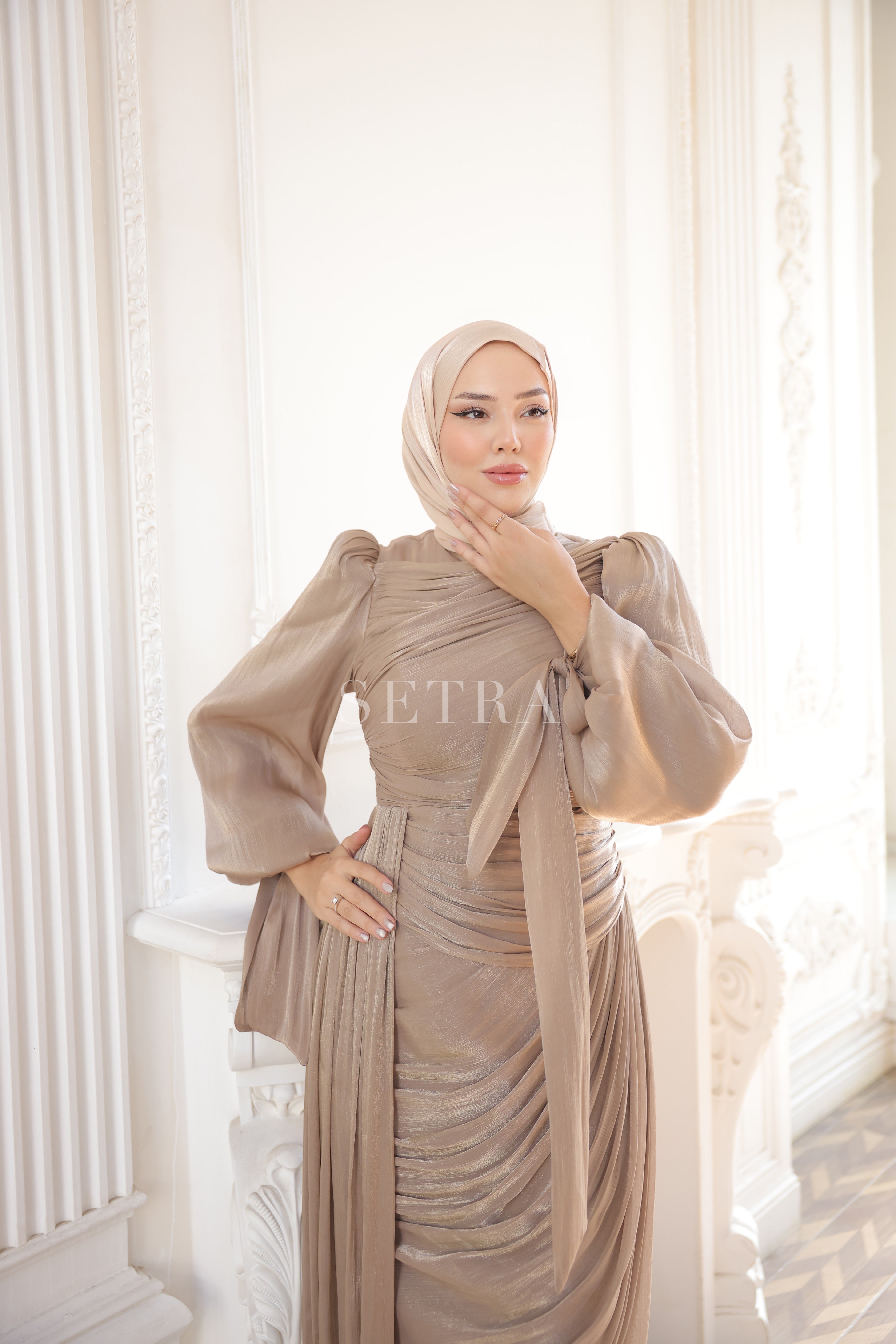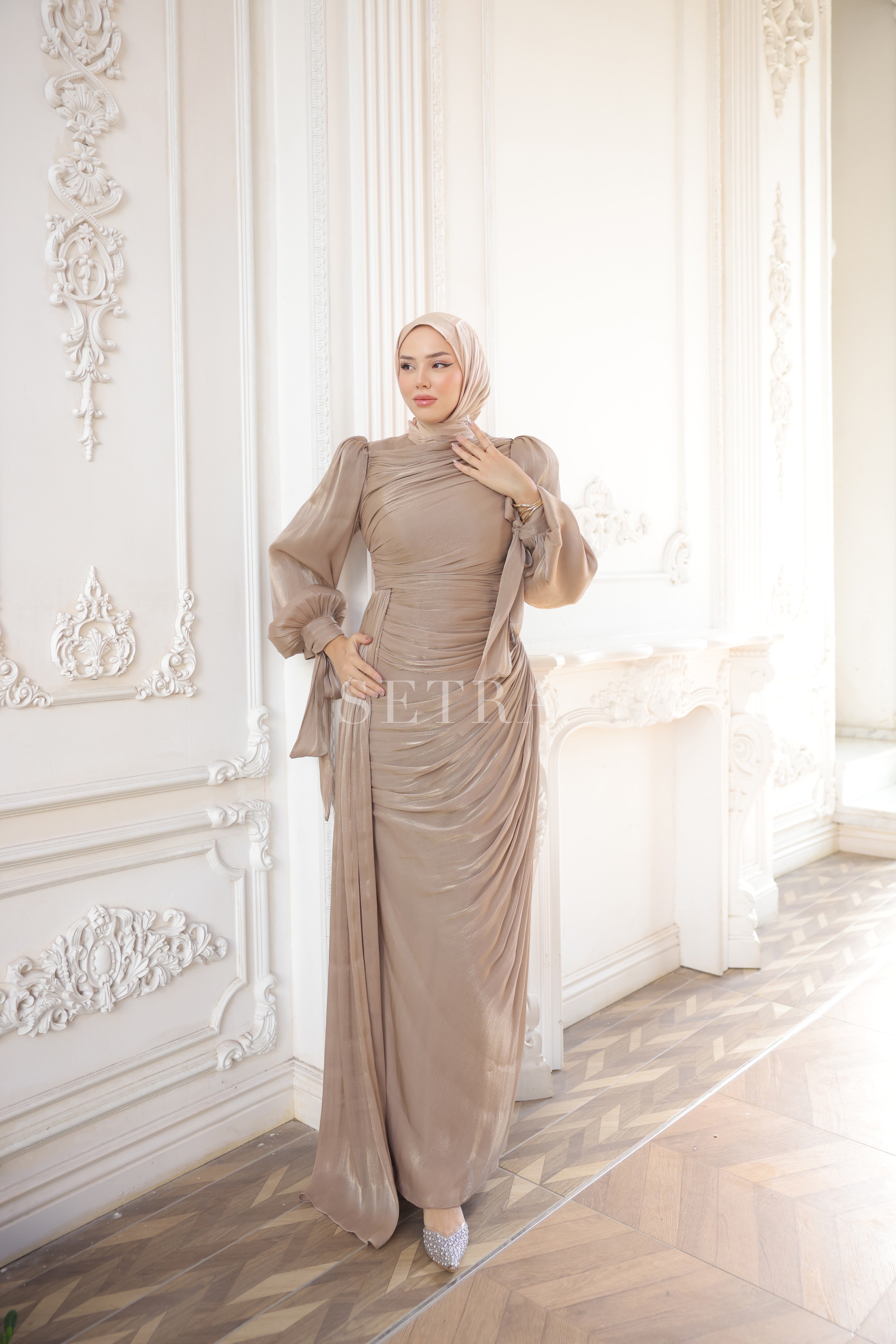 Özel Tasarım Pelerinli Abiye – A.Bej