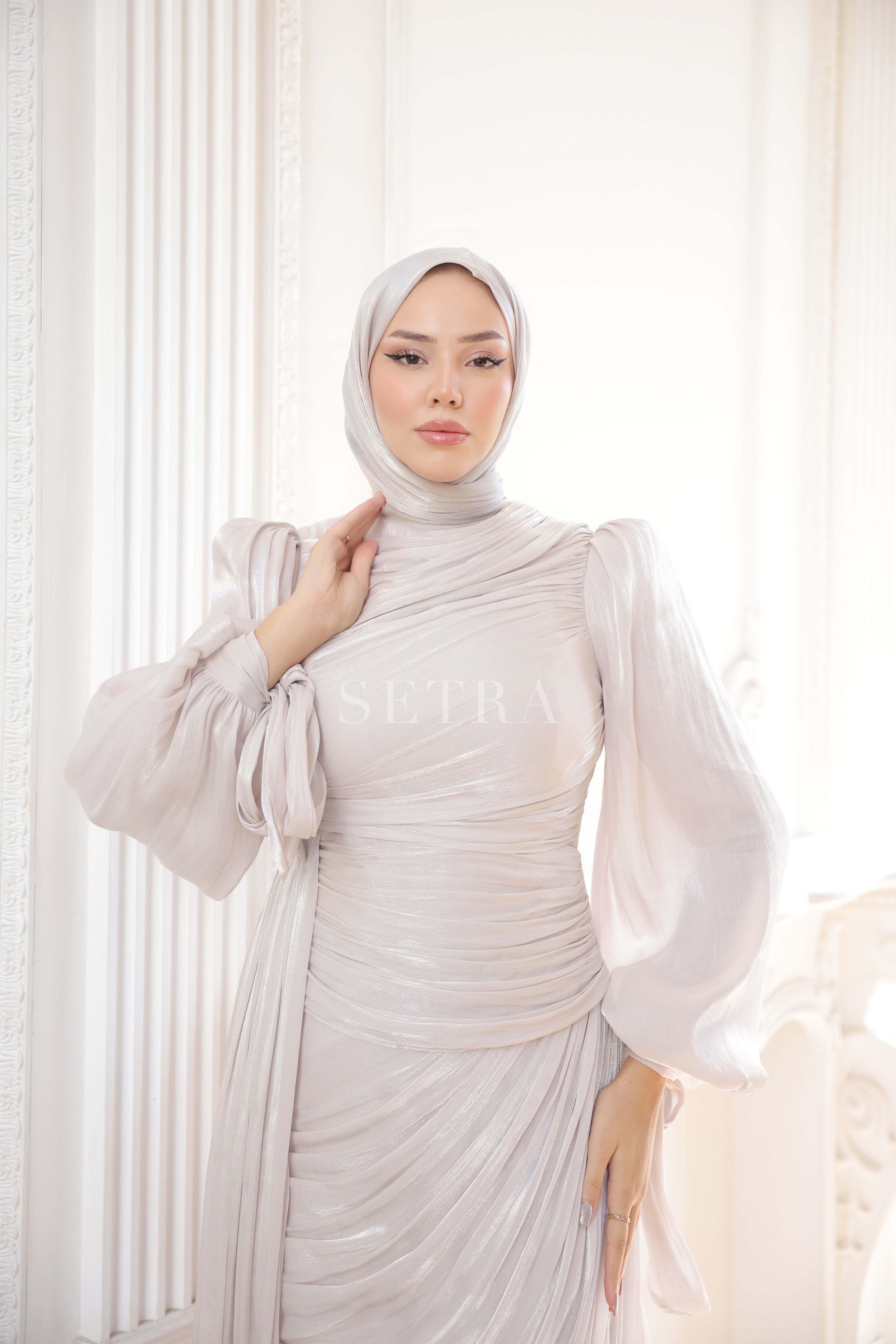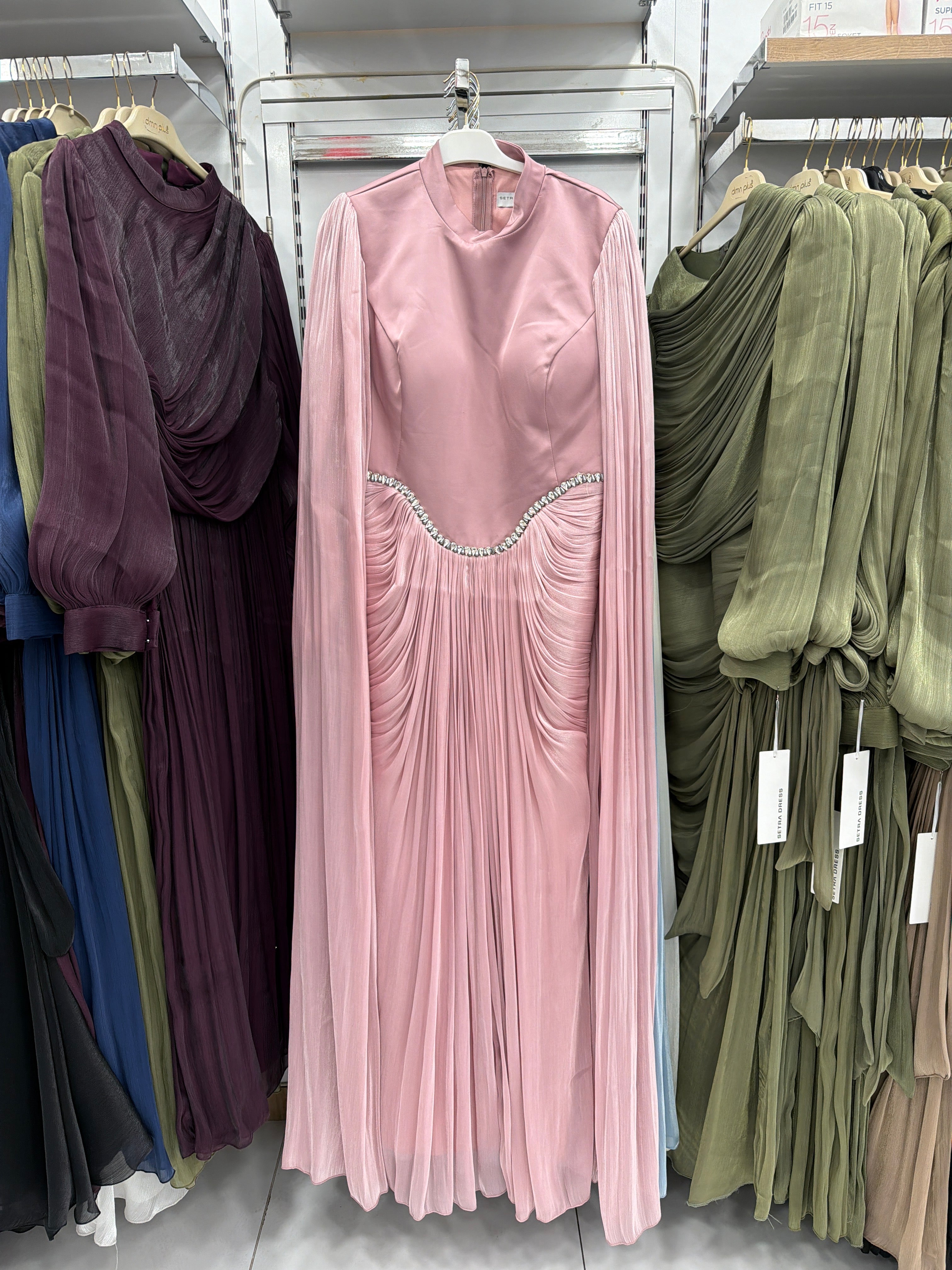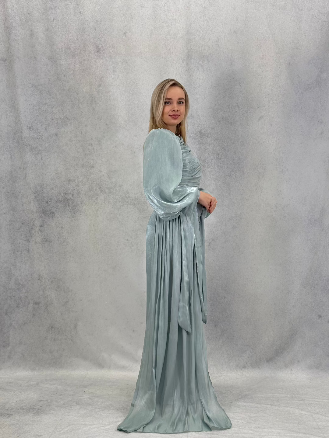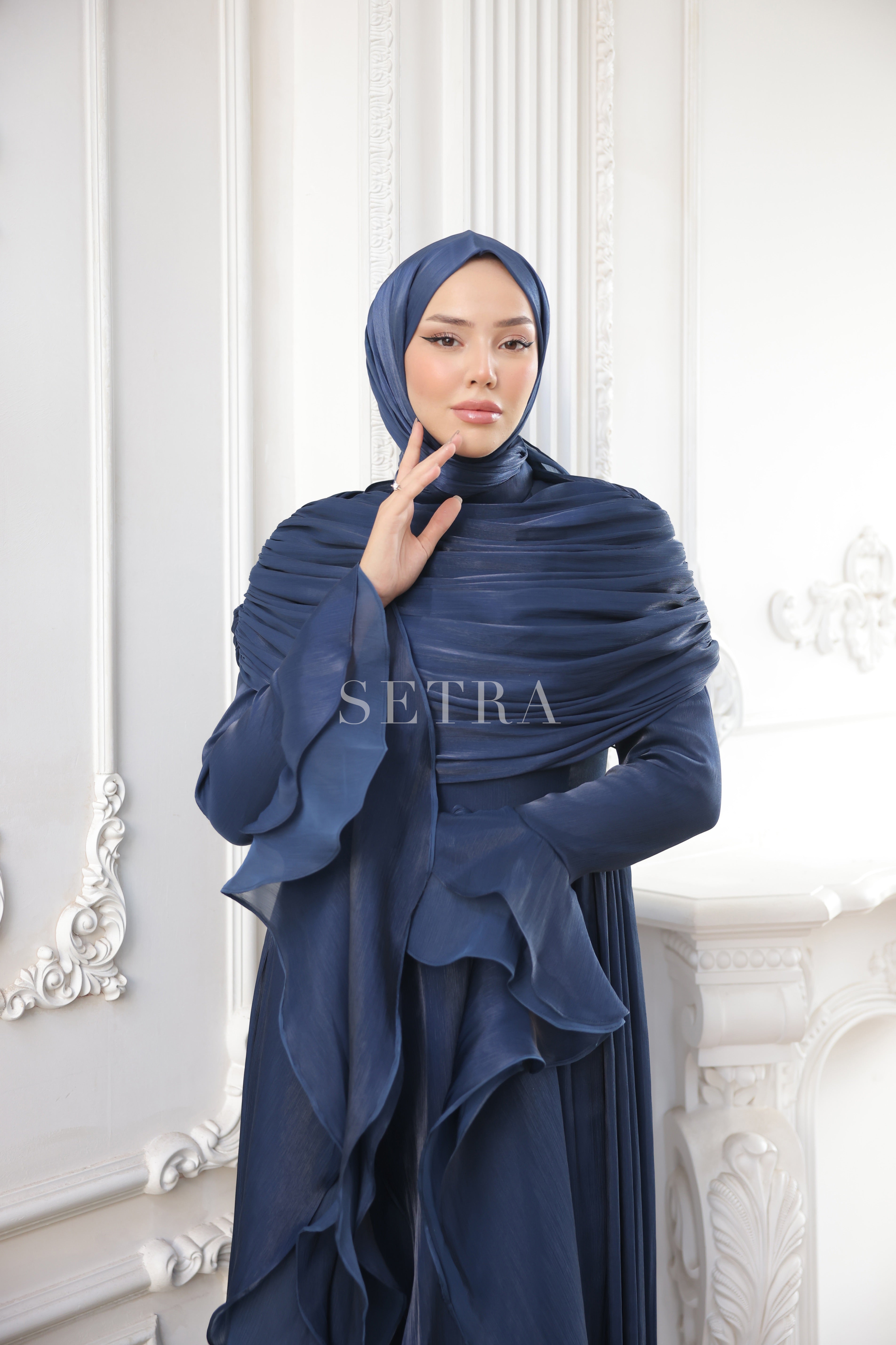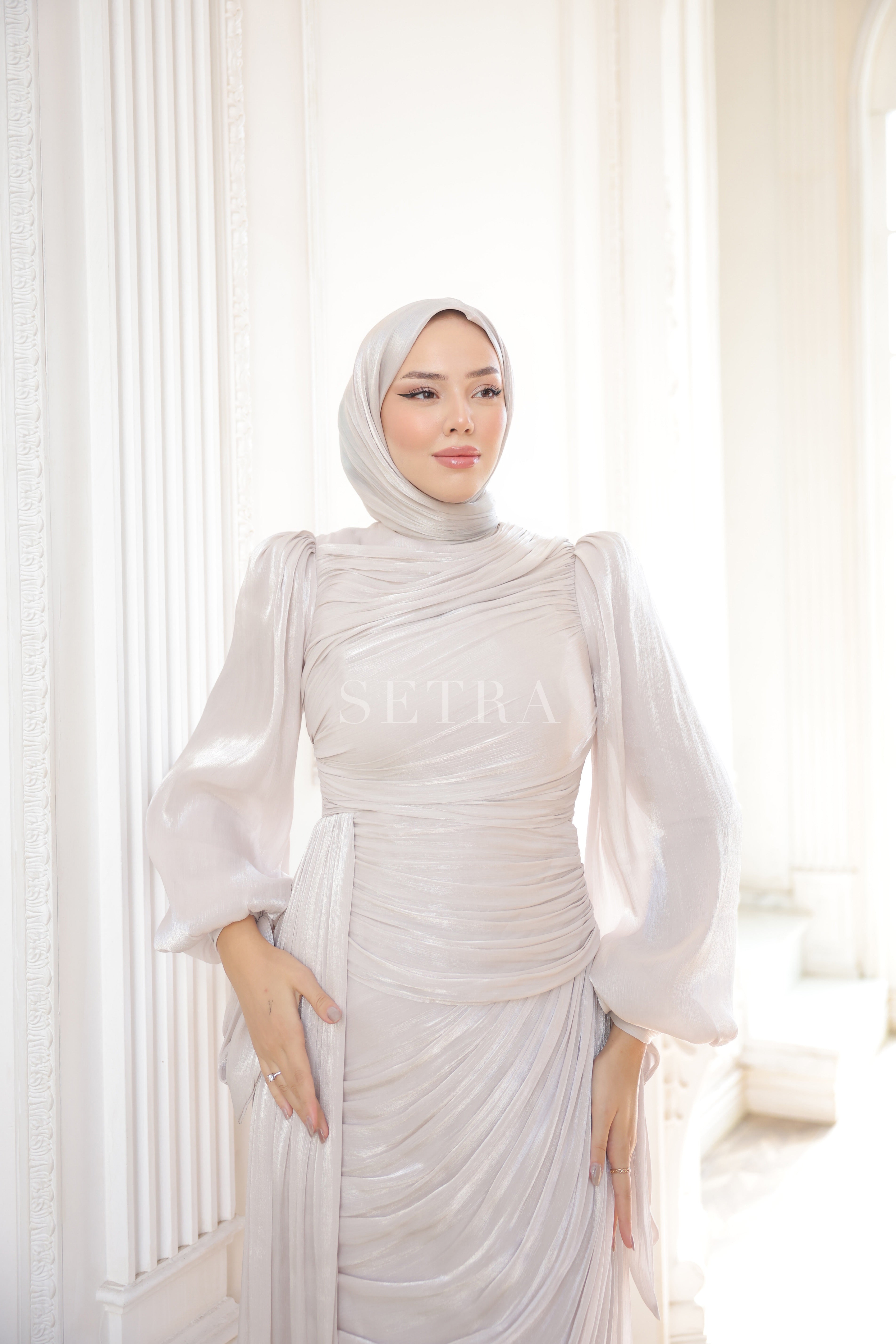 Taş Detaylı Pileli Tesettür Abiye Elbise