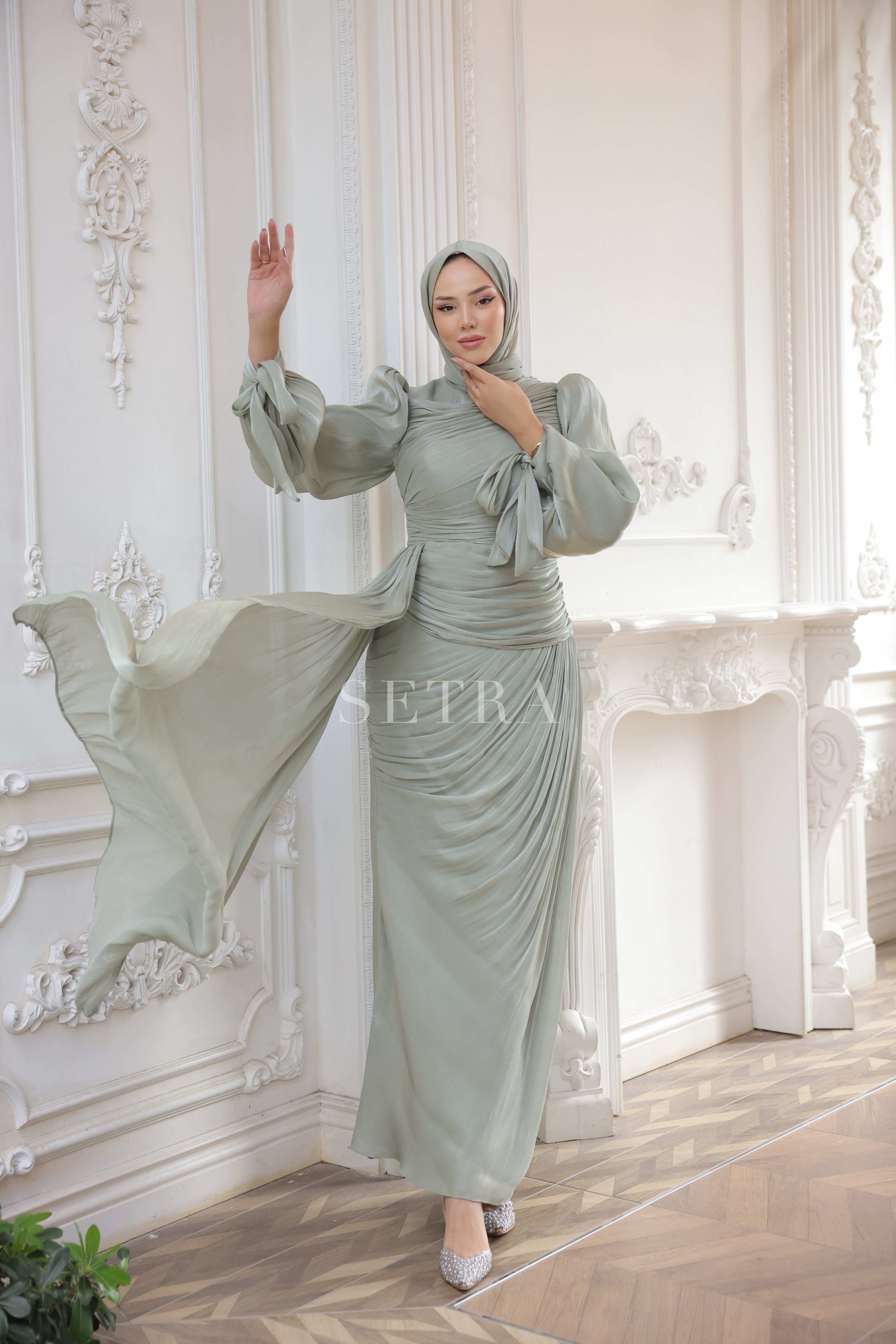 Aura Özel Tasarım Abiye Elbise – Nane Yeşili