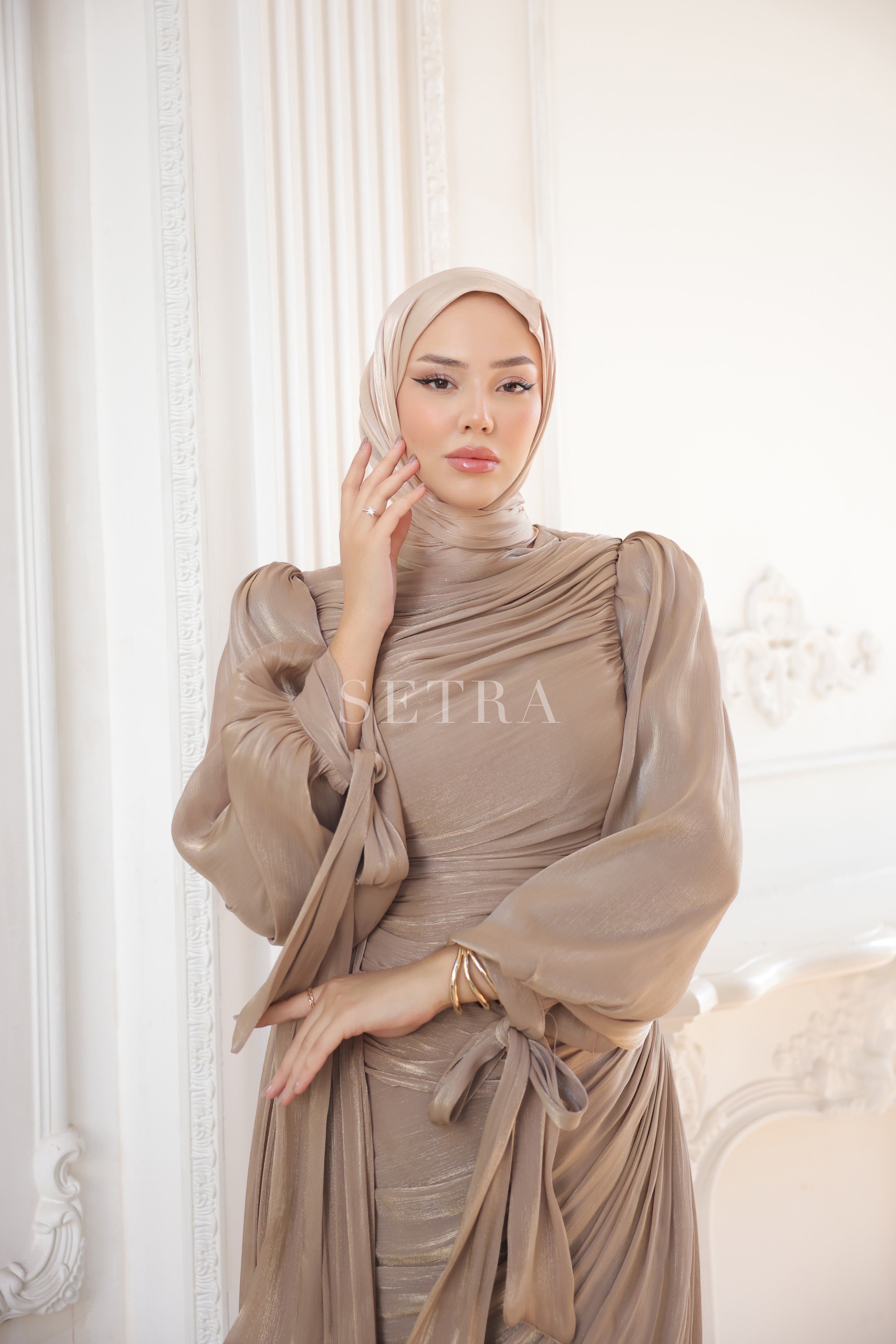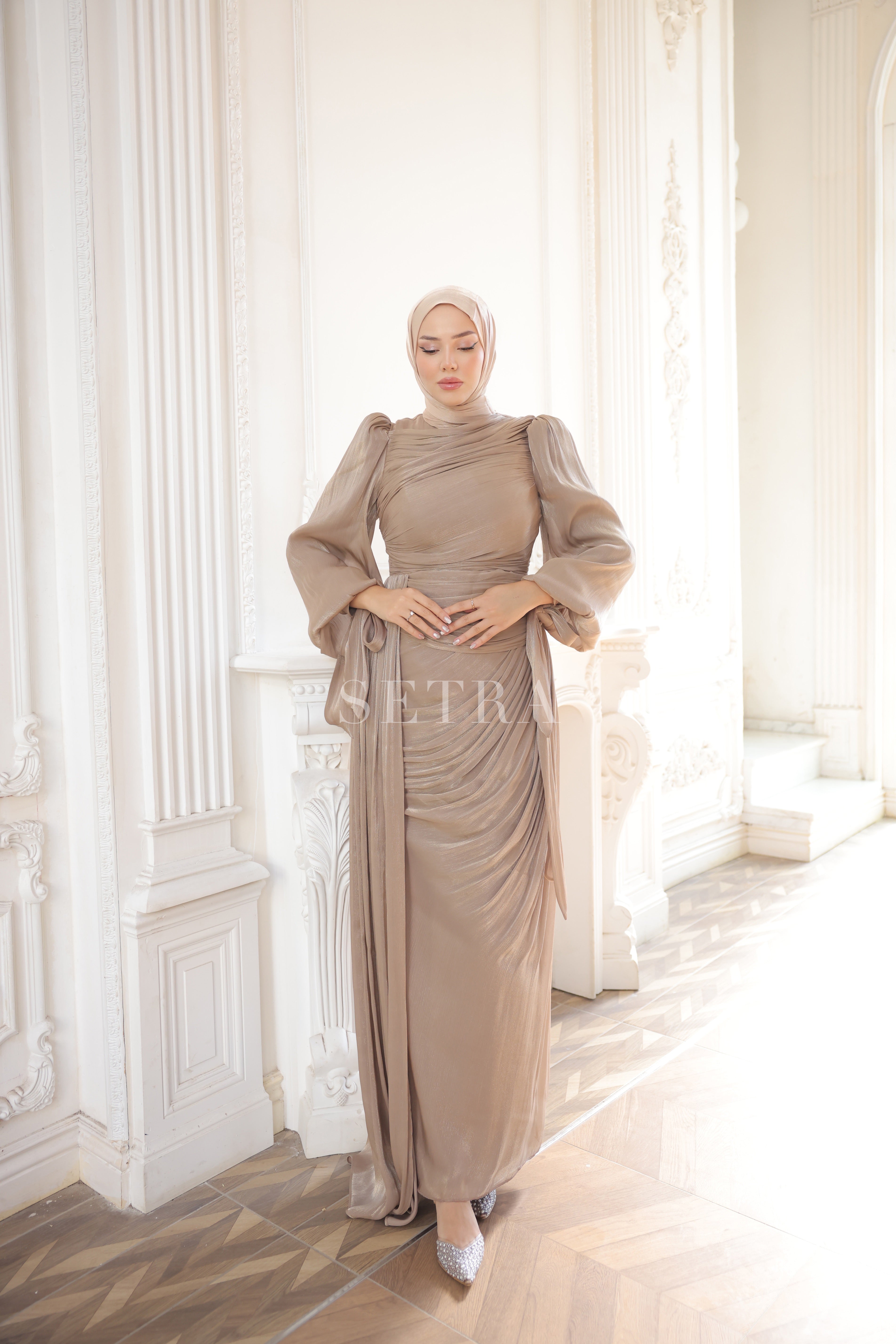Özel Tasarım Pelerinli Abiye – A.Bej