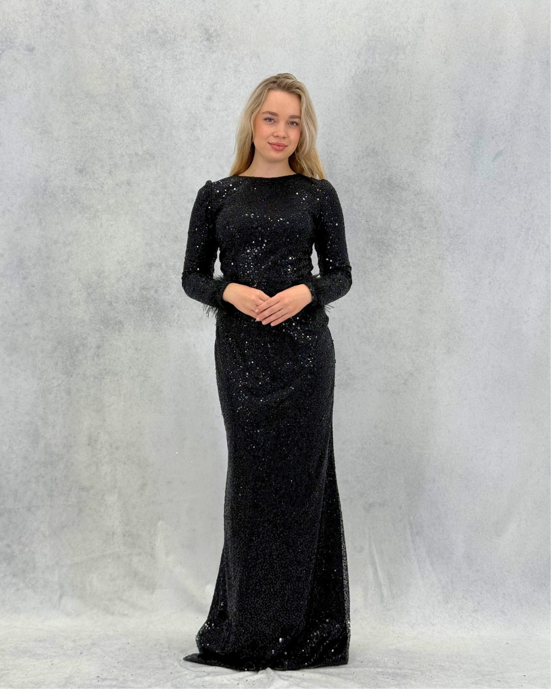 فستان سهرة طويل مطرز بالترتر