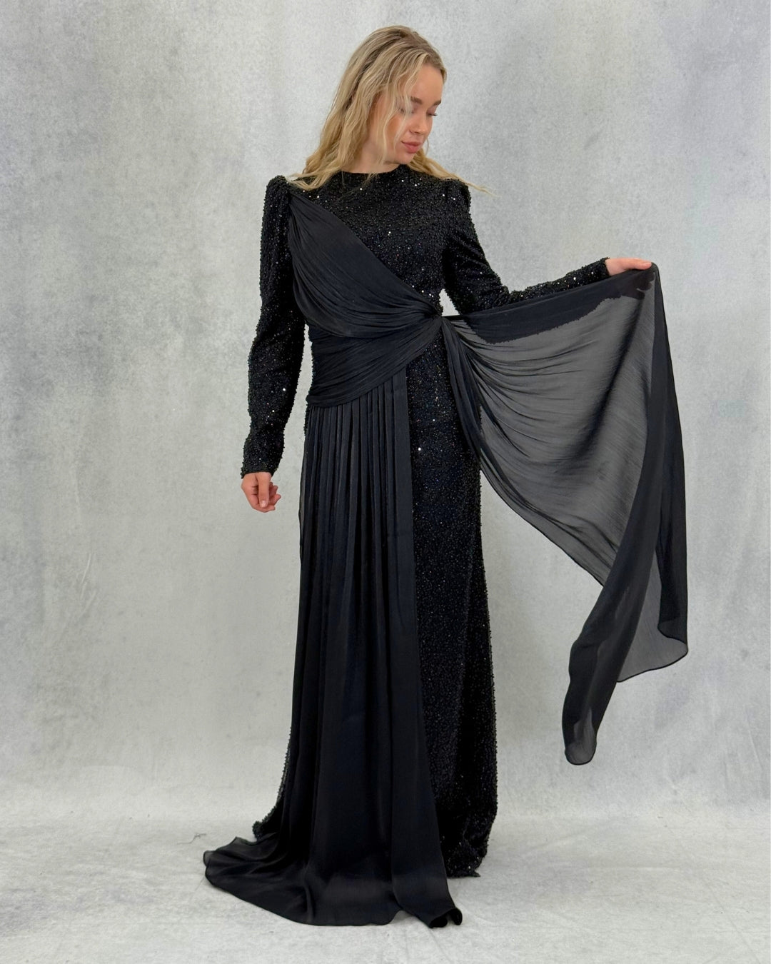 Özel Tasarım Pelerinli Abiye – Siyah