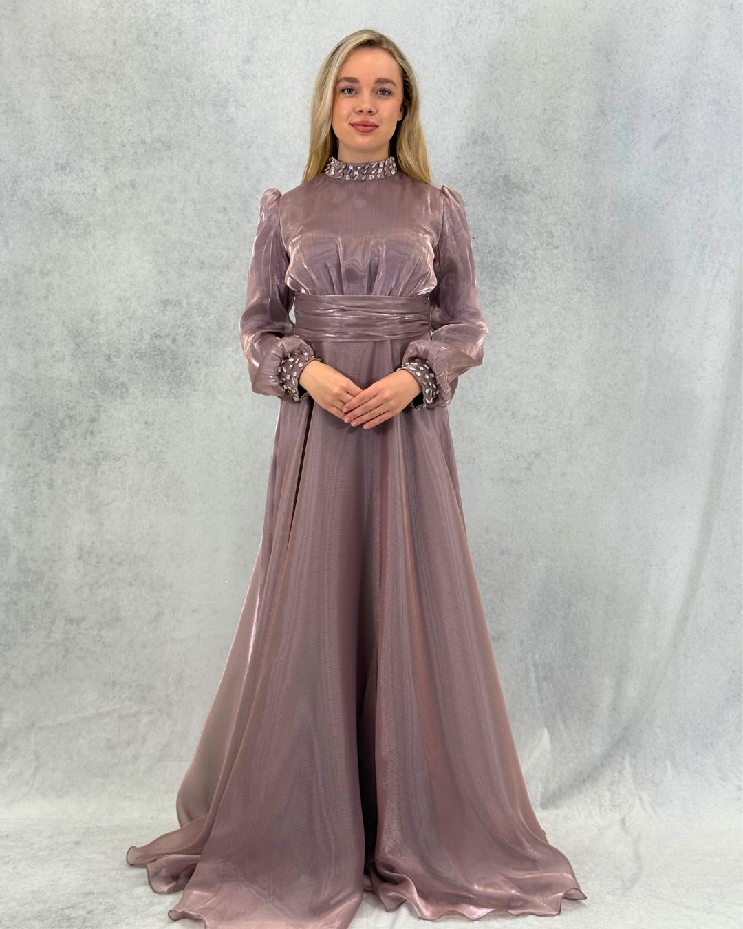 Özel Tasarım Pelerinli Abiye – Vizon