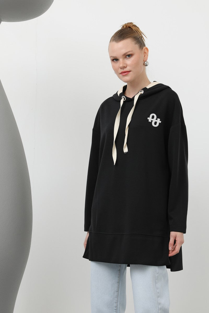 Kadın Nakış Detaylı Balıksırtı Kapişonlu Tunik