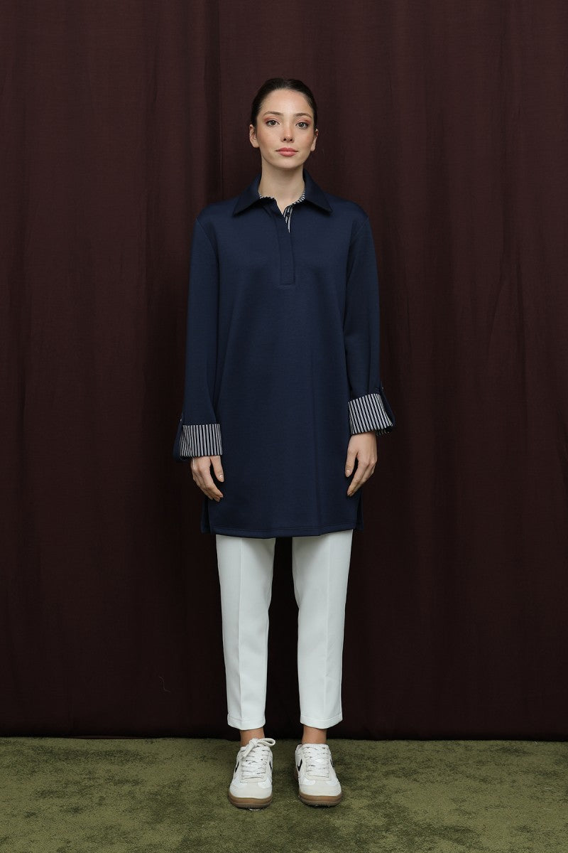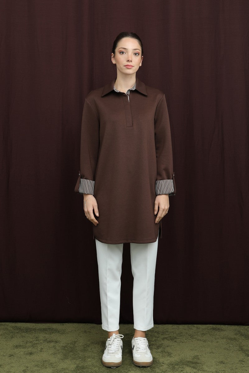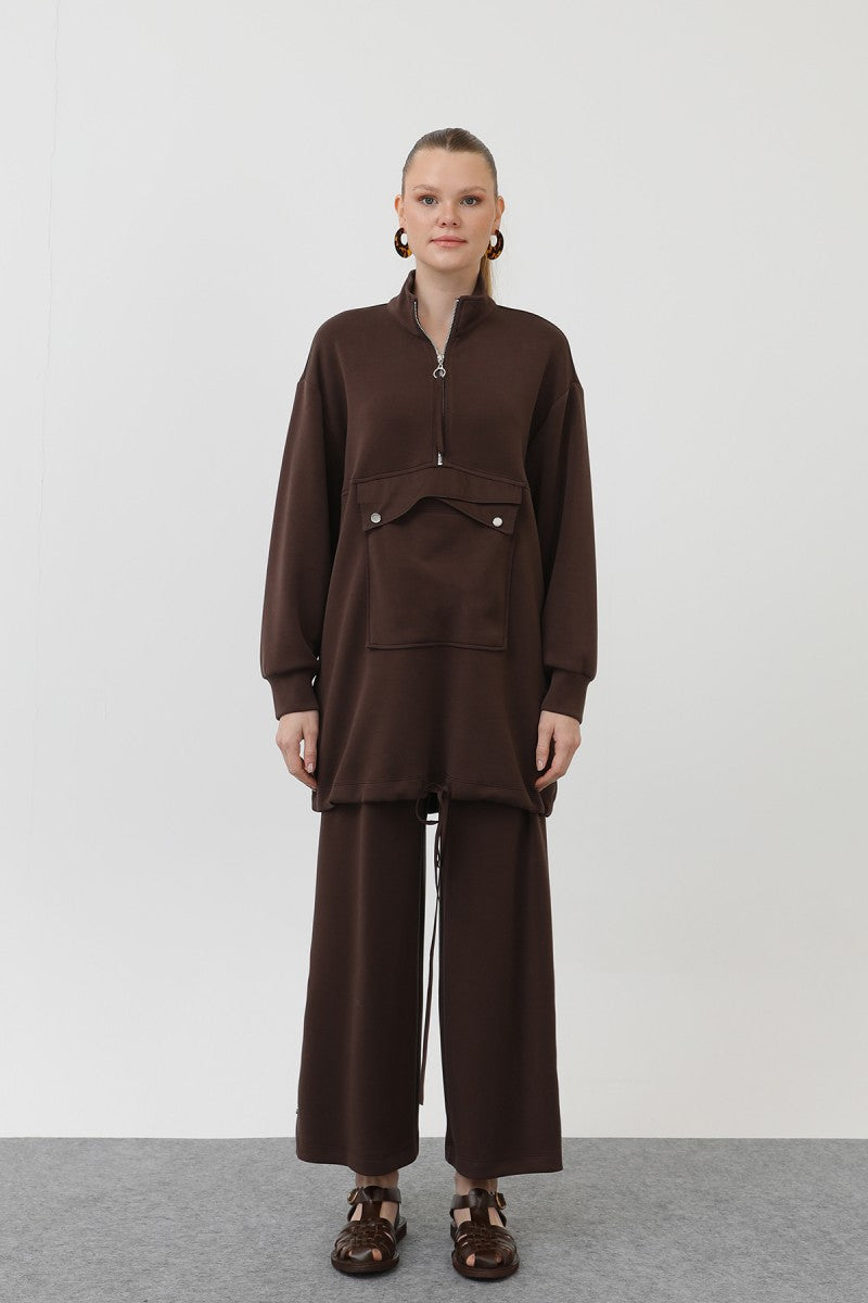 Önü Fermuar Detaylı Kapüşonlu Tunik