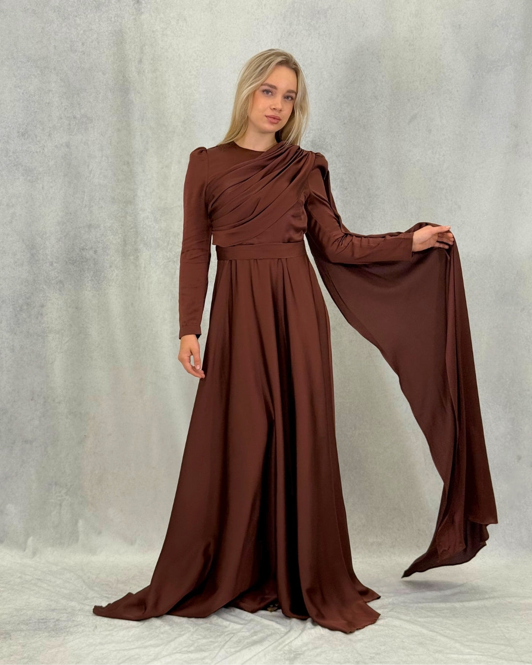 Aura Özel Tasarım Abiye Elbise – Kahverengi