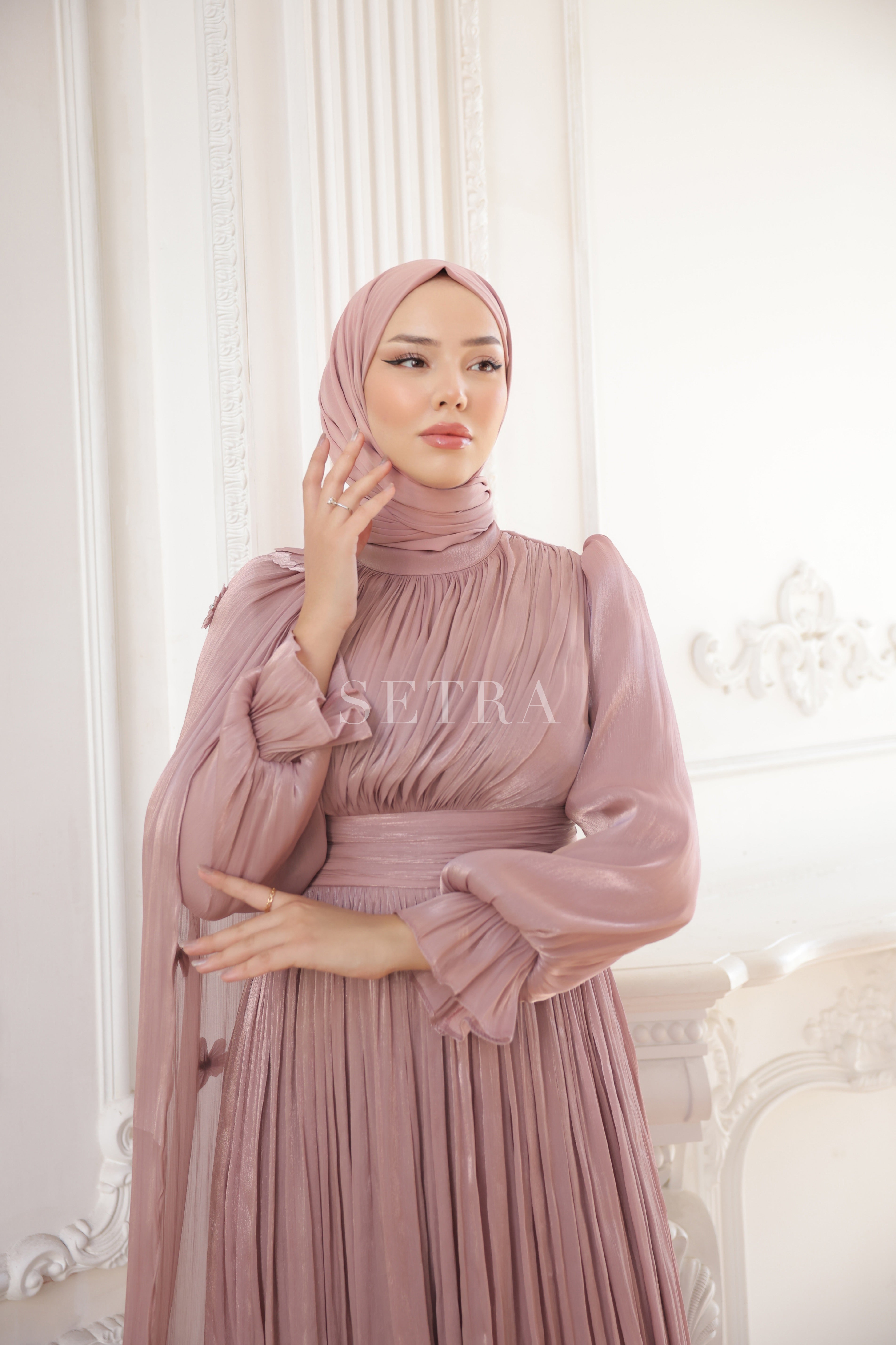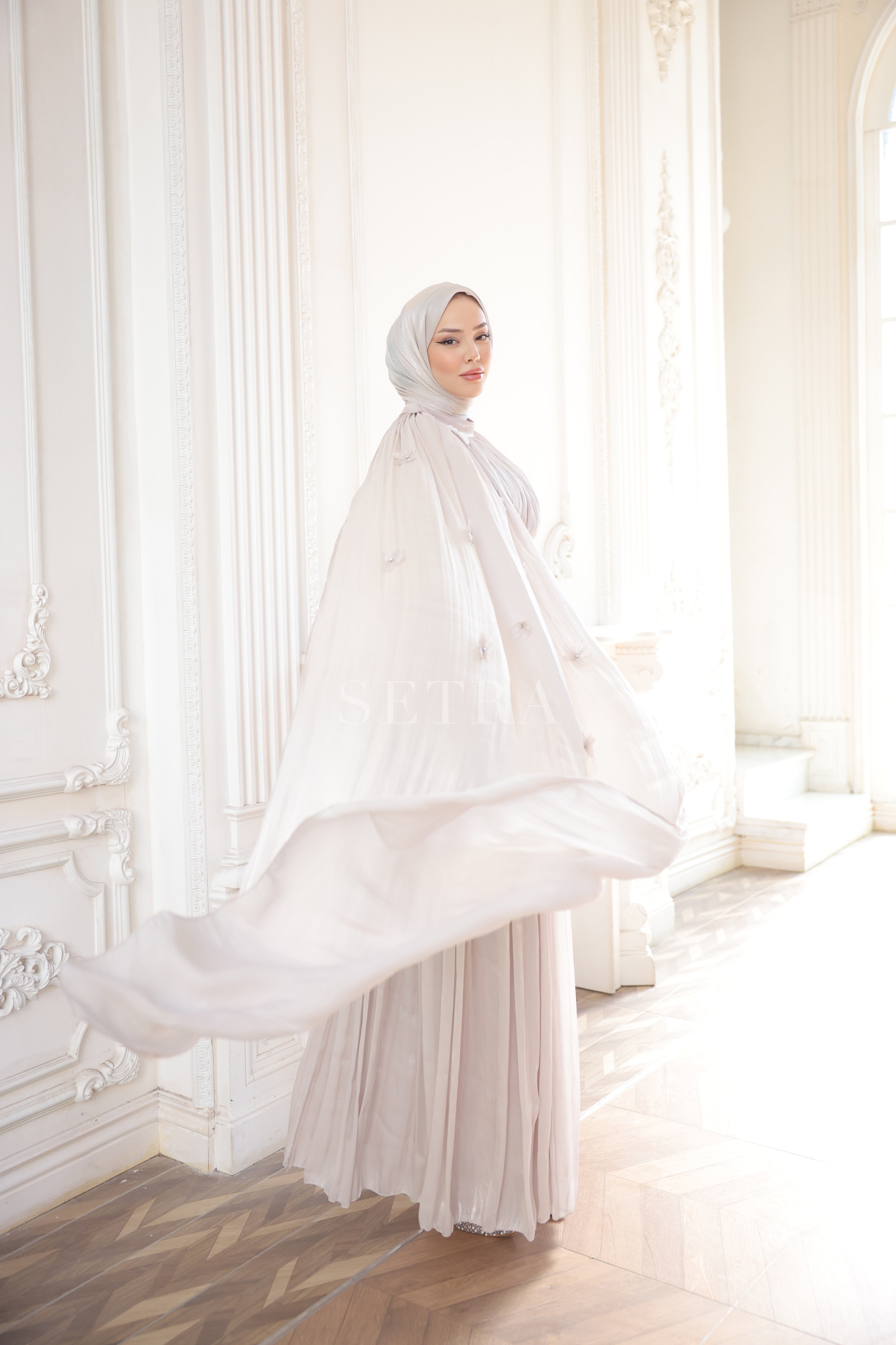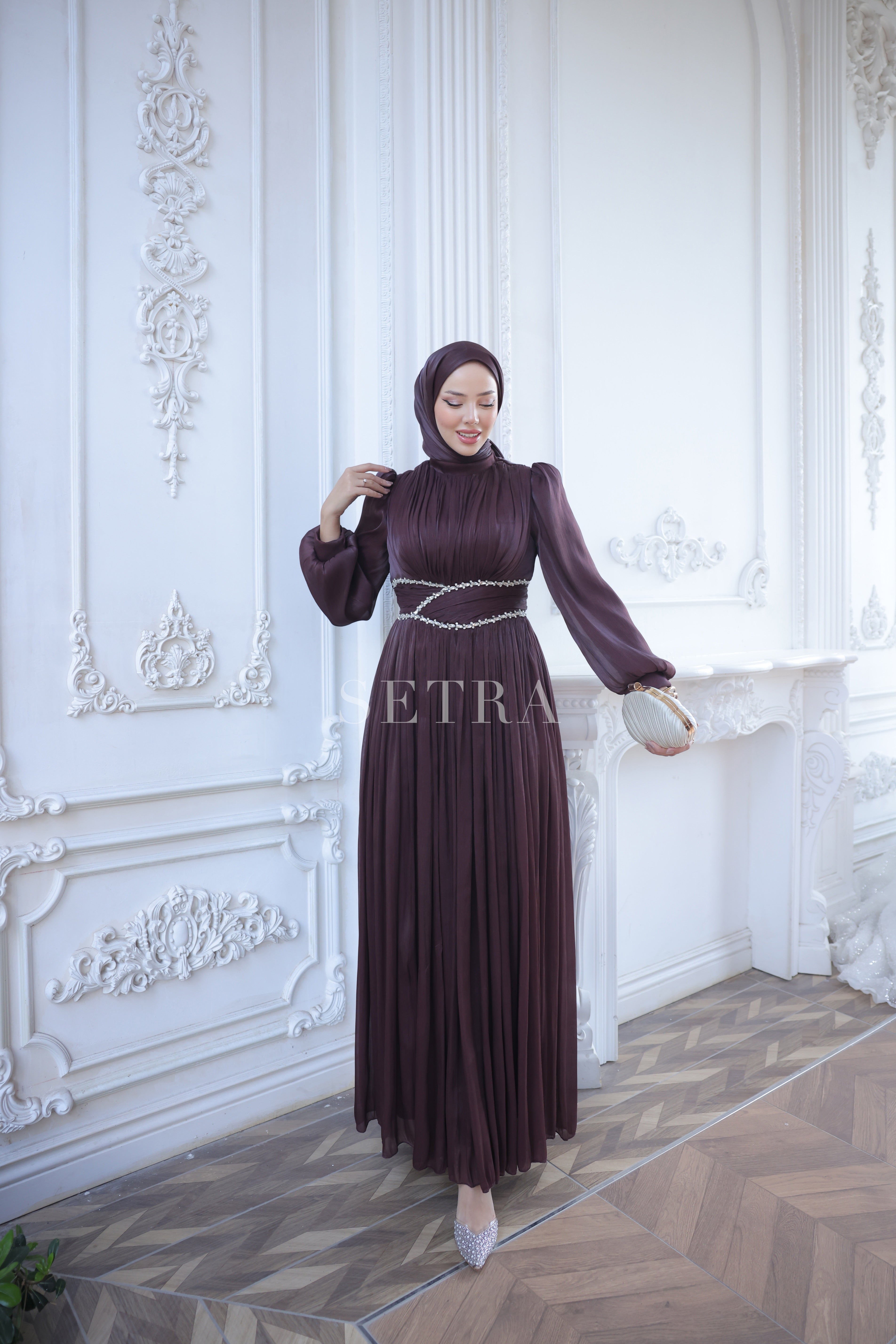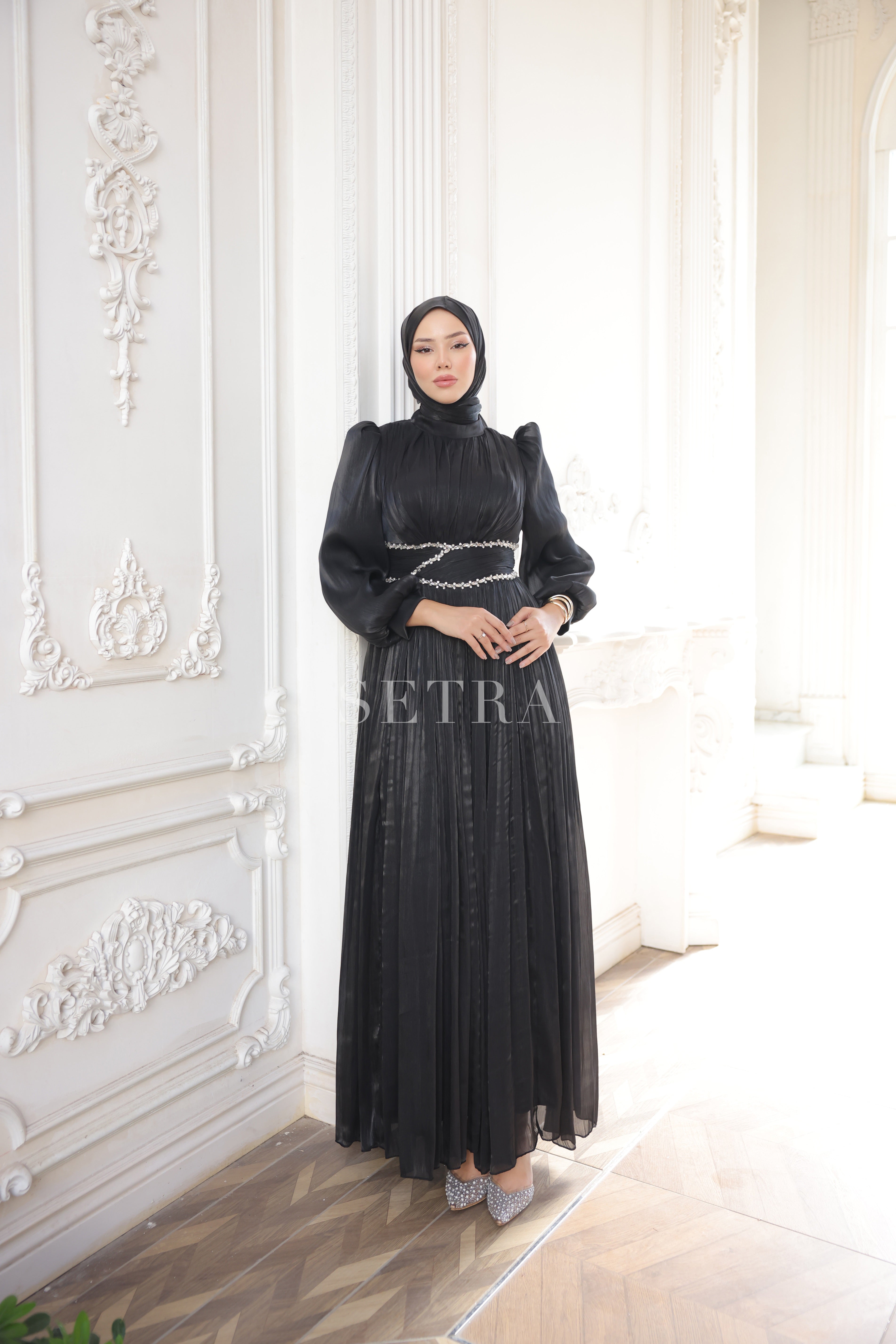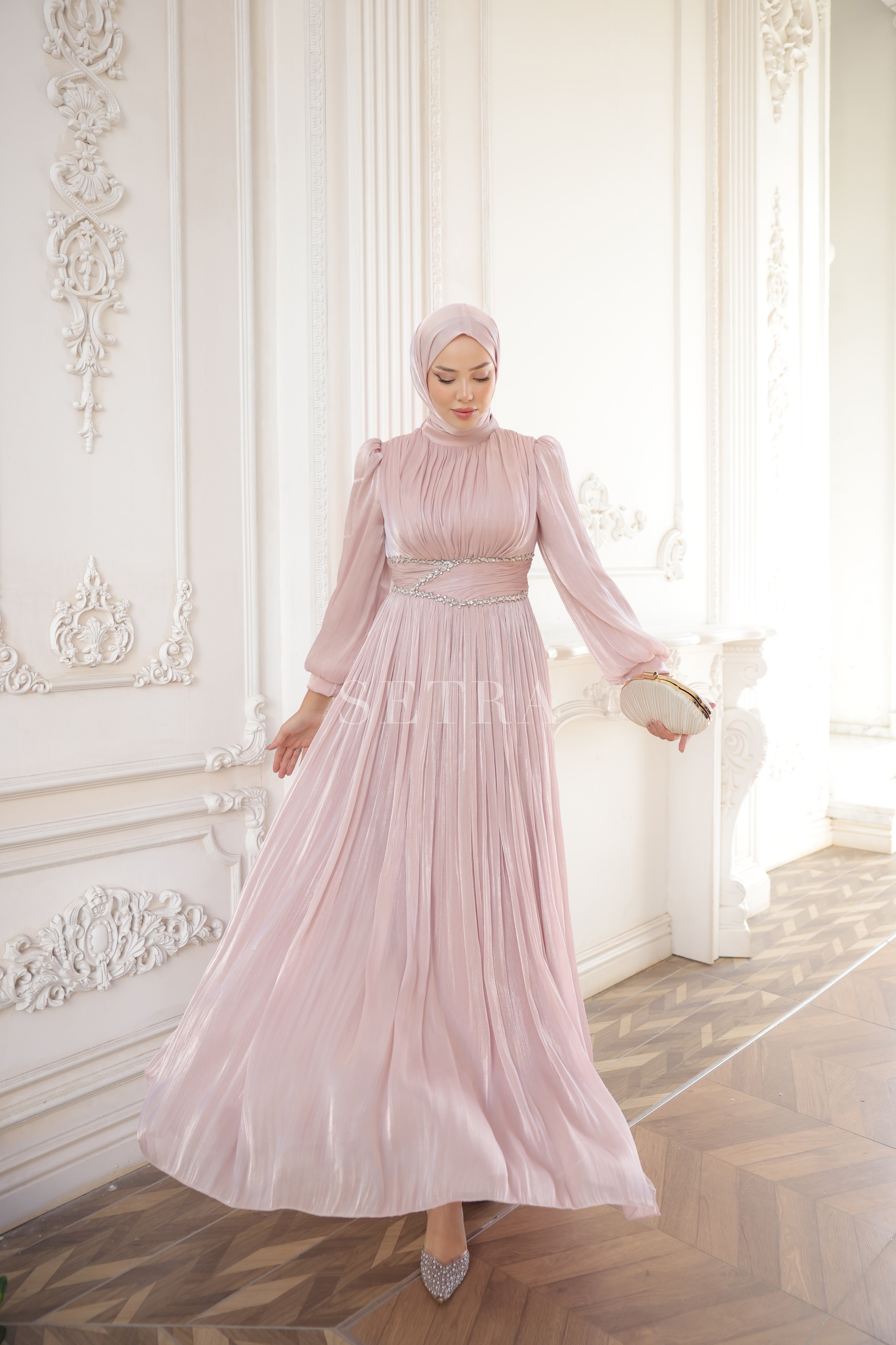 Taş Detaylı Pileli Tesettür Abiye Elbise
