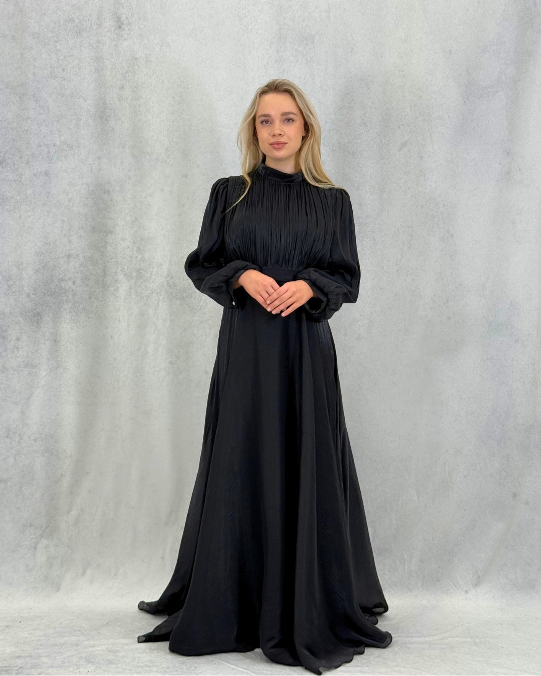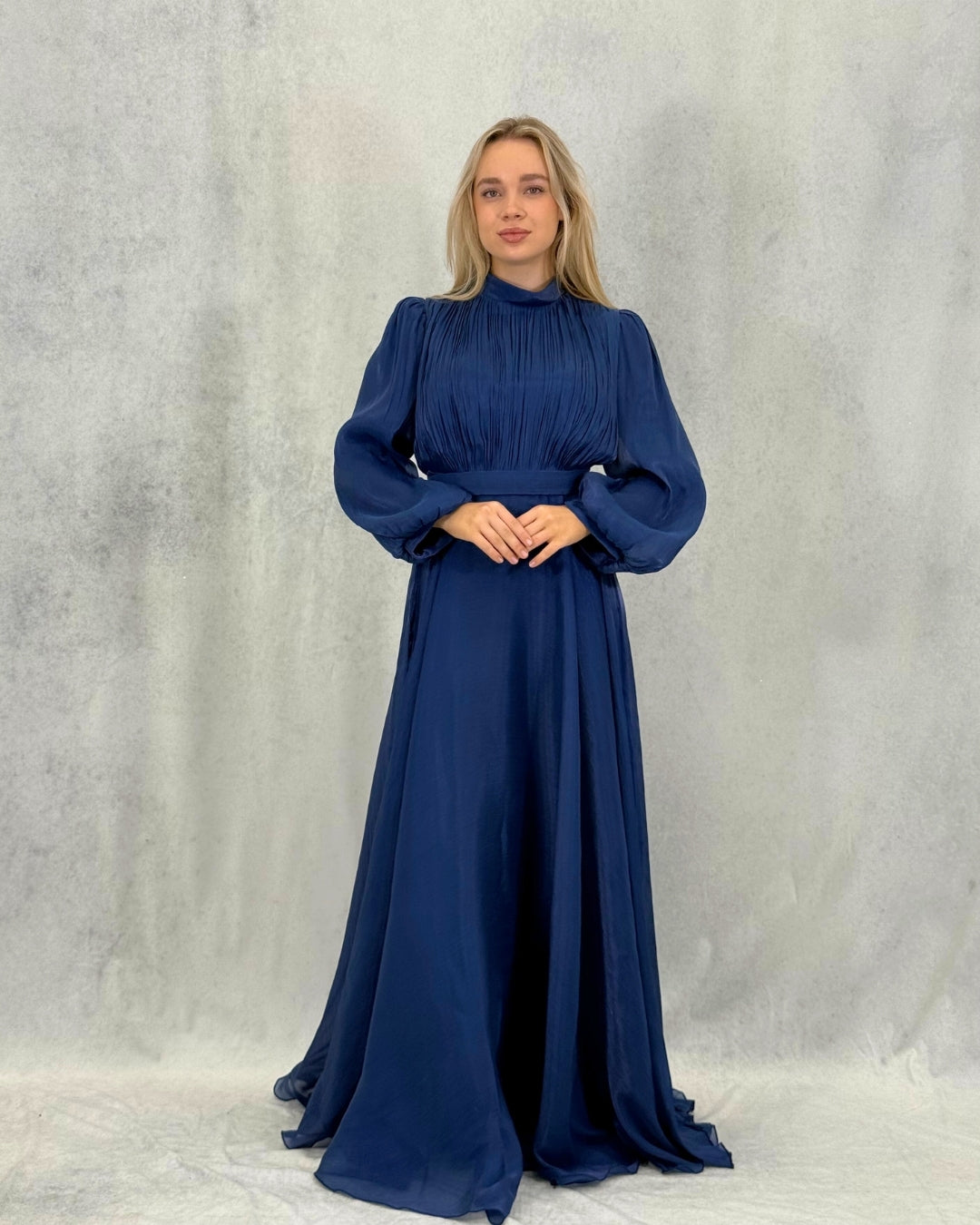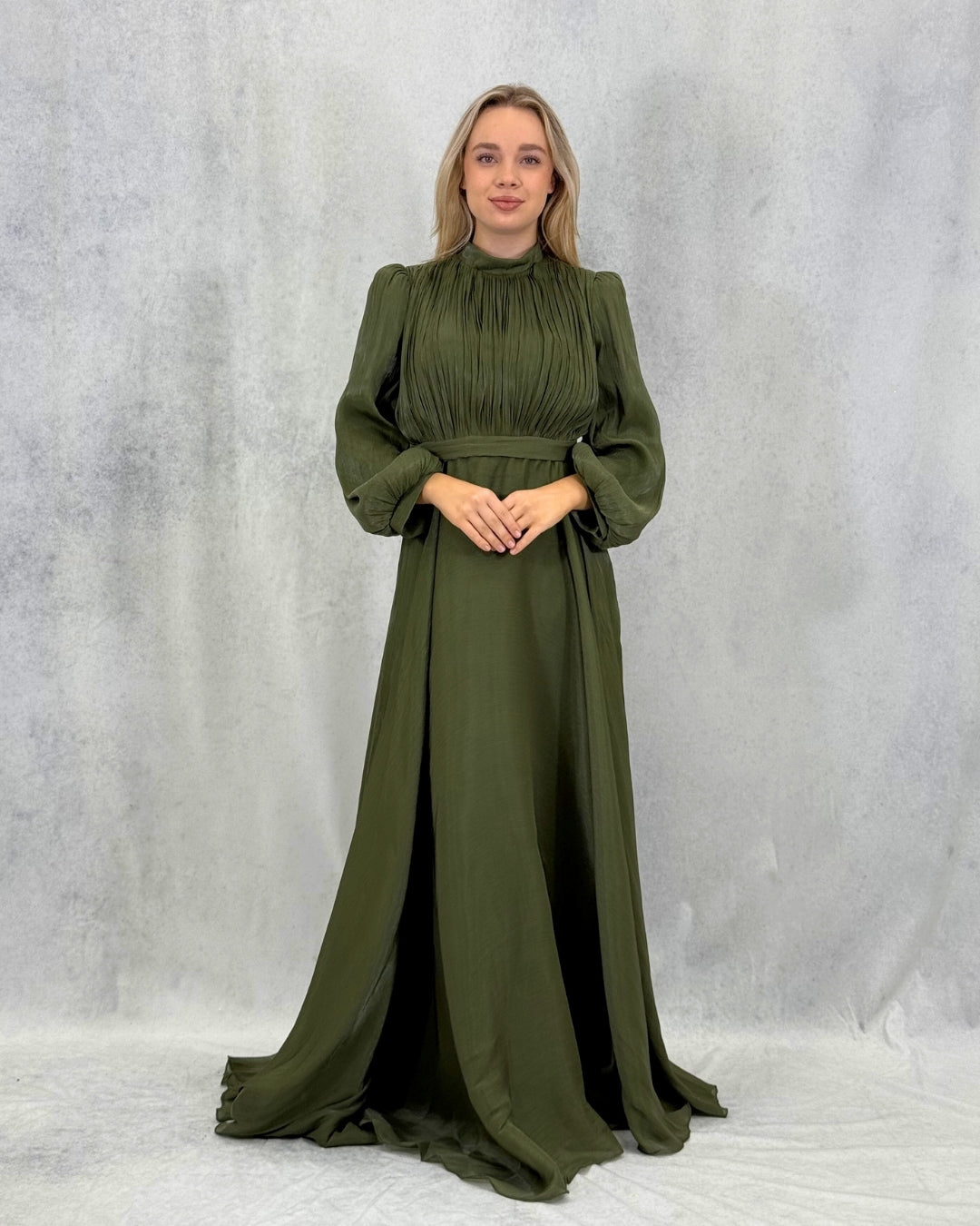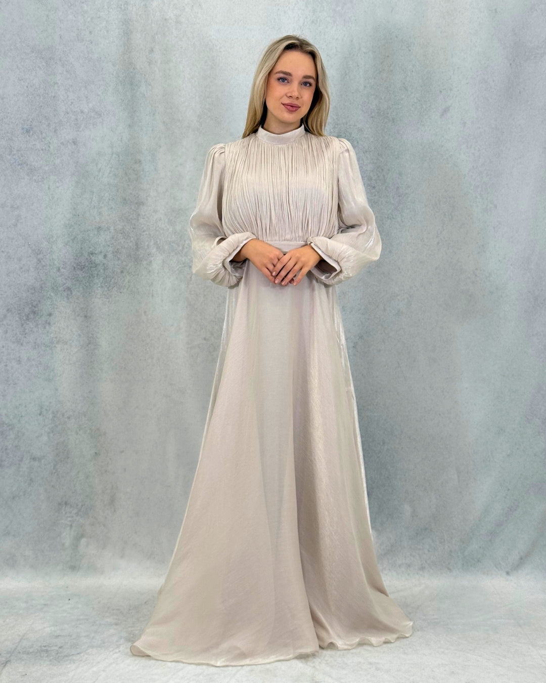 Taş Detaylı Pileli Tesettür Abiye Elbise