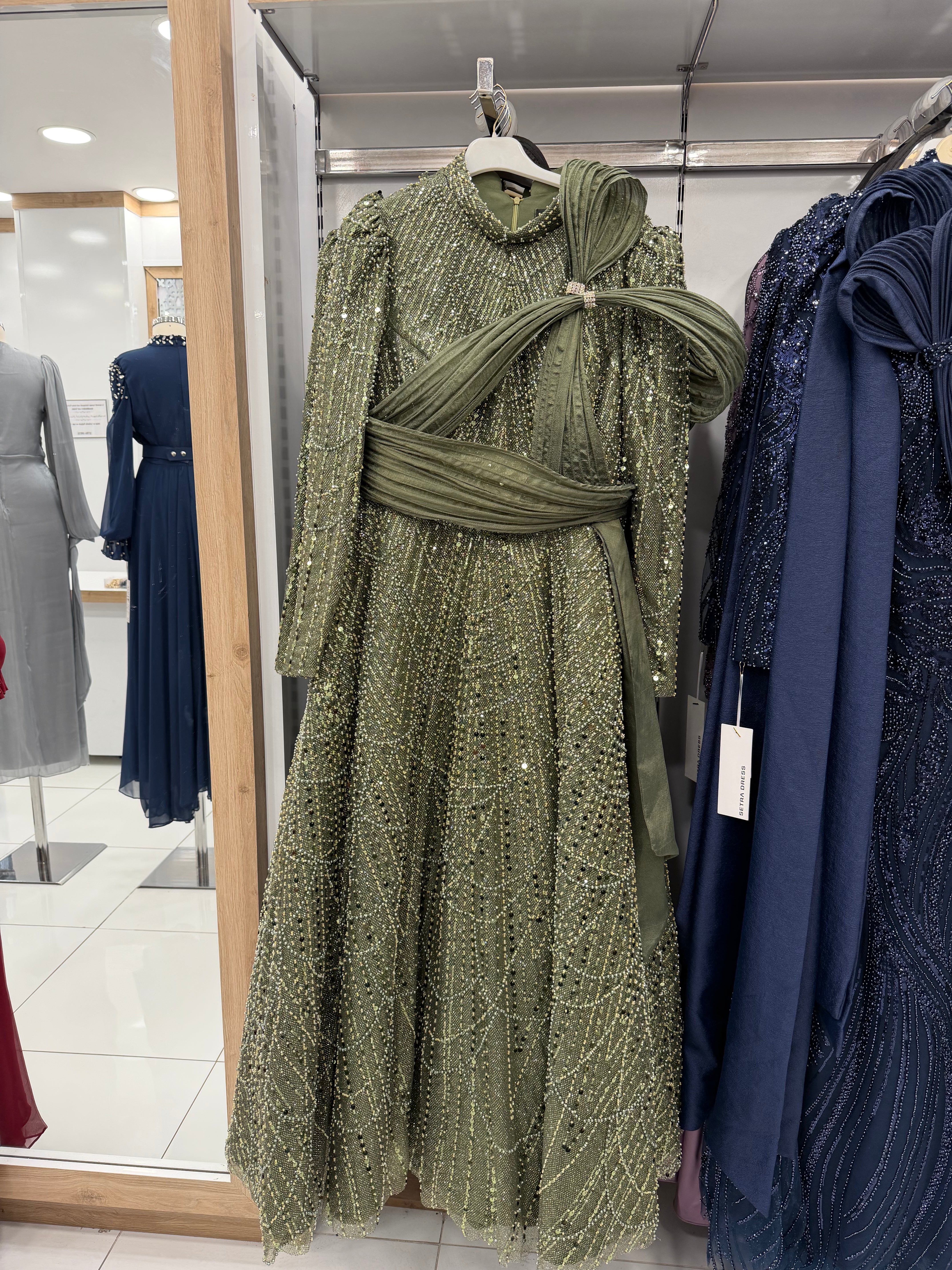 Uzun Kollu Abiye Elbise