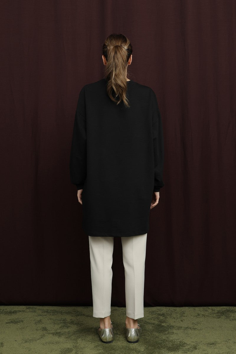 Zarif aplikeler ve detaylı işlemelerle modern bir şıklık sunan bu tunik, özgün tasarımıyla öne çıkar. Konforlu kesimi ve hafif dokusuyla günlük kombinlerde hem şık hem de rahat bir kullanım sağlar.2610727