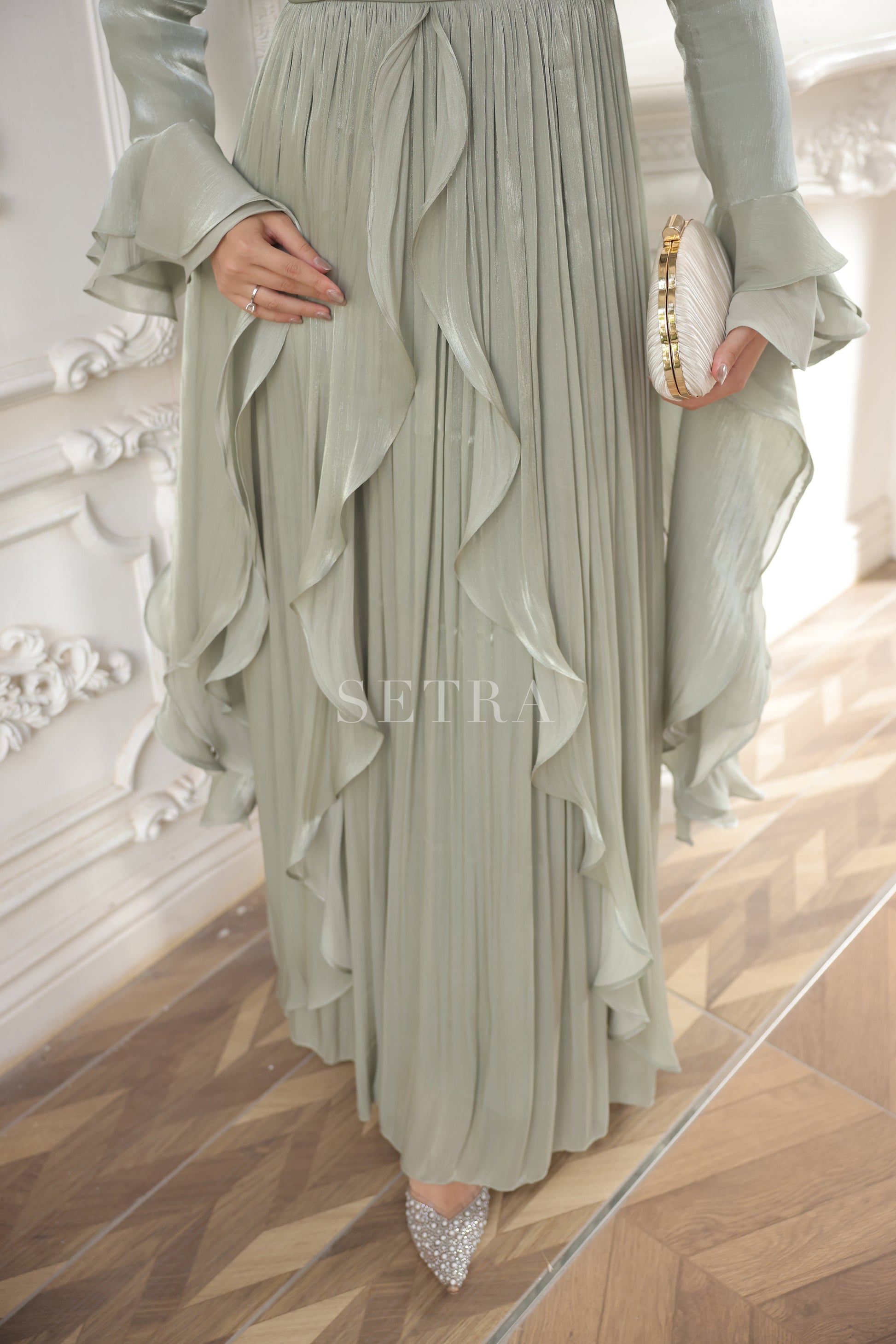 Aura Özel Tasarım Abiye Elbise – Nane Yeşili
