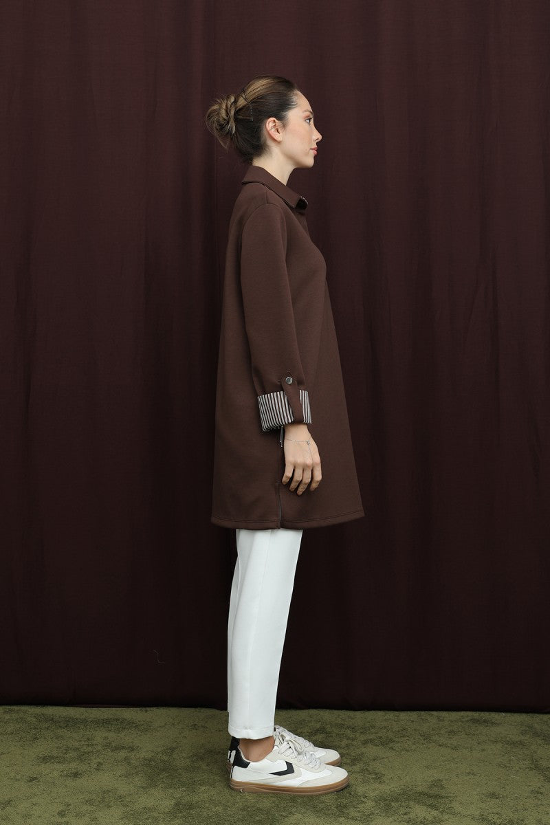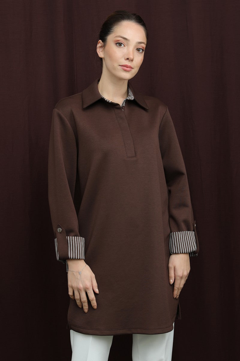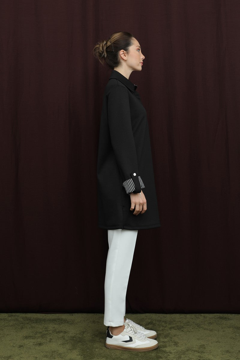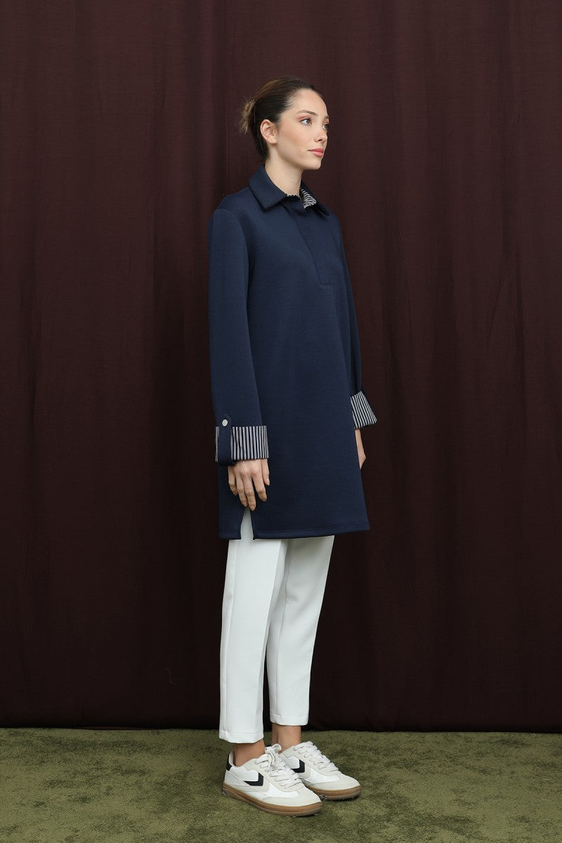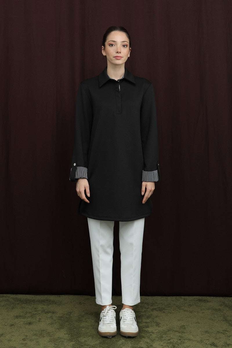 Minimalist tasarımı pat ve kol detaylarıyla zenginleştirilen bu tunik, şıklığı ve konforu bir araya getirir. Hafif kumaşı sayesinde her mevsime uygun kullanım sunar. Günlük kombinlerin vazgeçilmez parçalarındandır.2610724