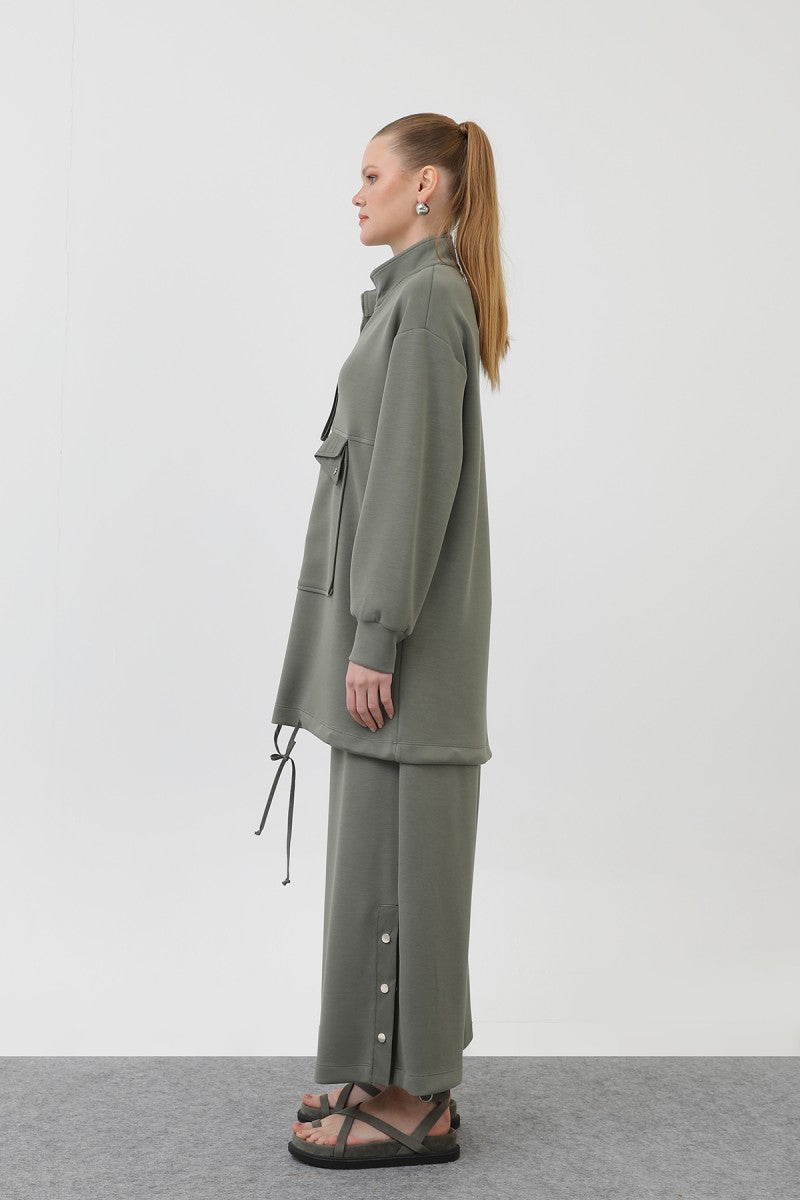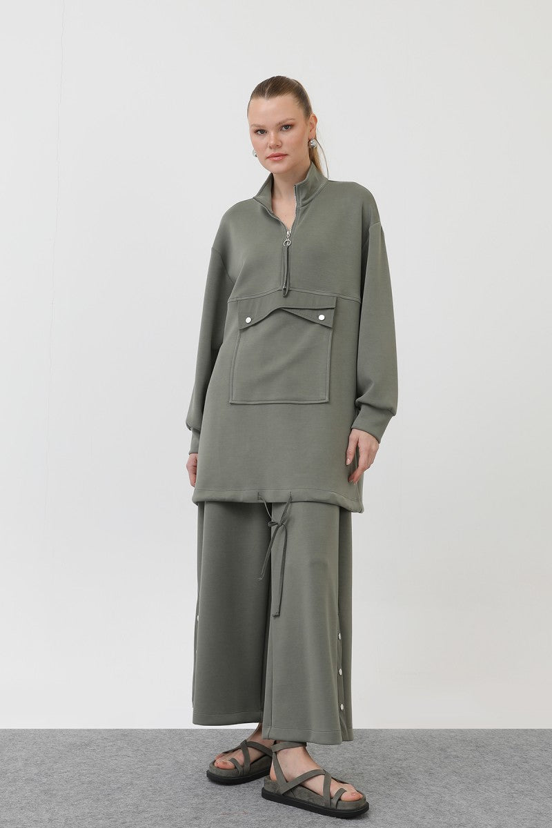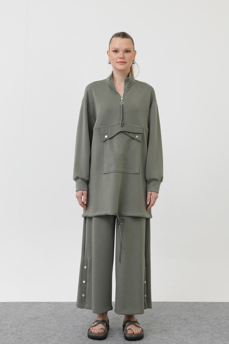 Cep detayları ve fermuar detaylarıyla fonksiyonel bir şıklık sunan bu takım, modern tasarımıyla dikkat çeker. Hem şık hem de pratik olan bu takım, her ortamda rahatça kullanılabilir. 2614299