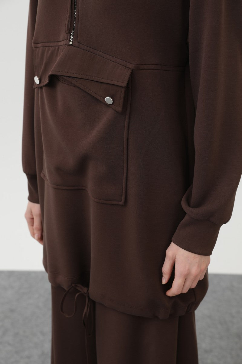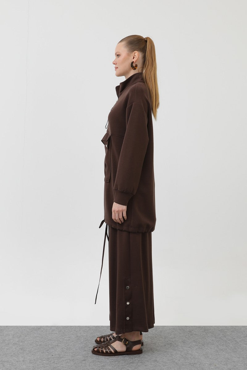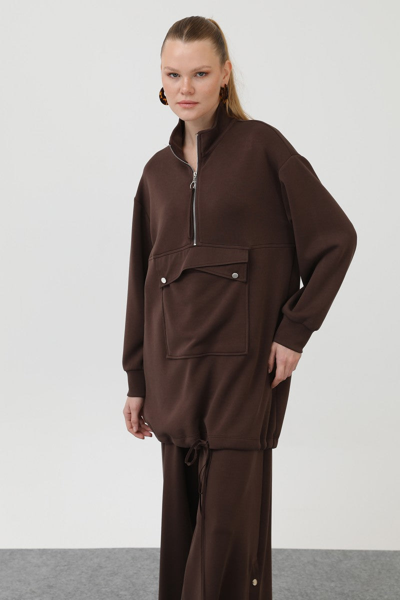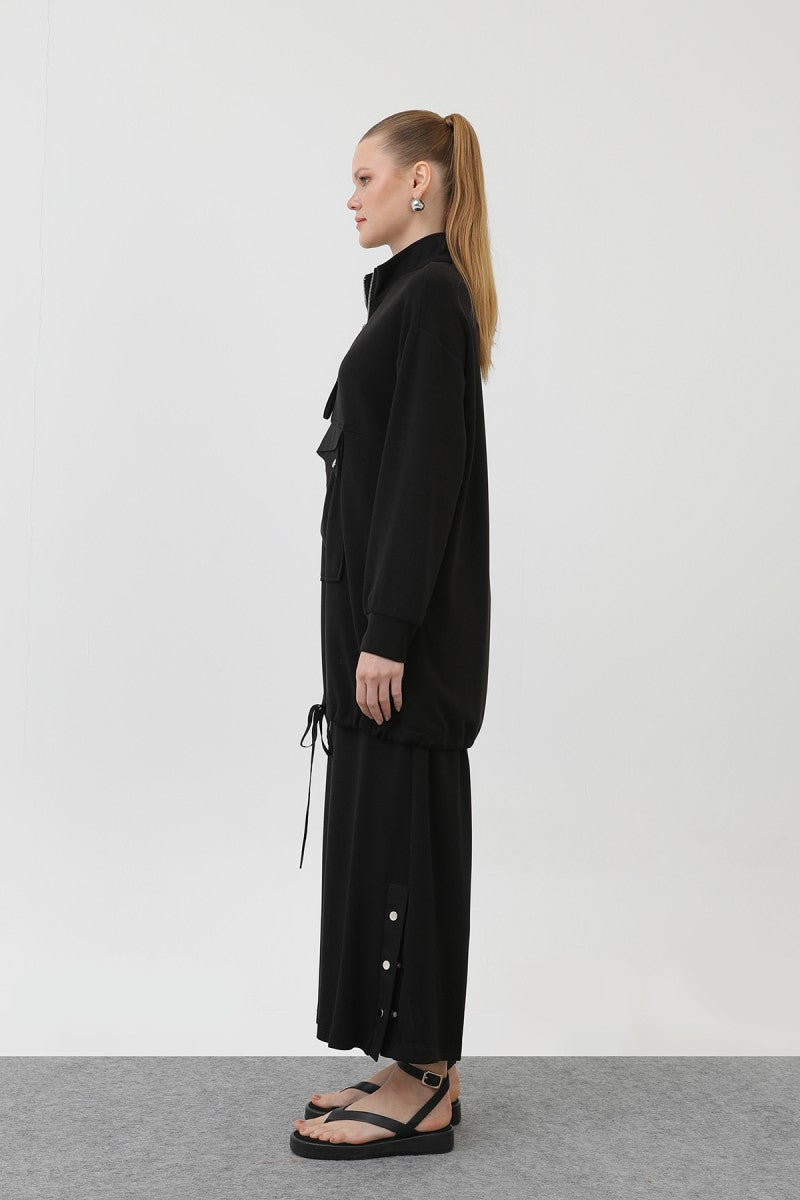 Cep detayları ve fermuar detaylarıyla fonksiyonel bir şıklık sunan bu takım, modern tasarımıyla dikkat çeker. Hem şık hem de pratik olan bu takım, her ortamda rahatça kullanılabilir. 2614299