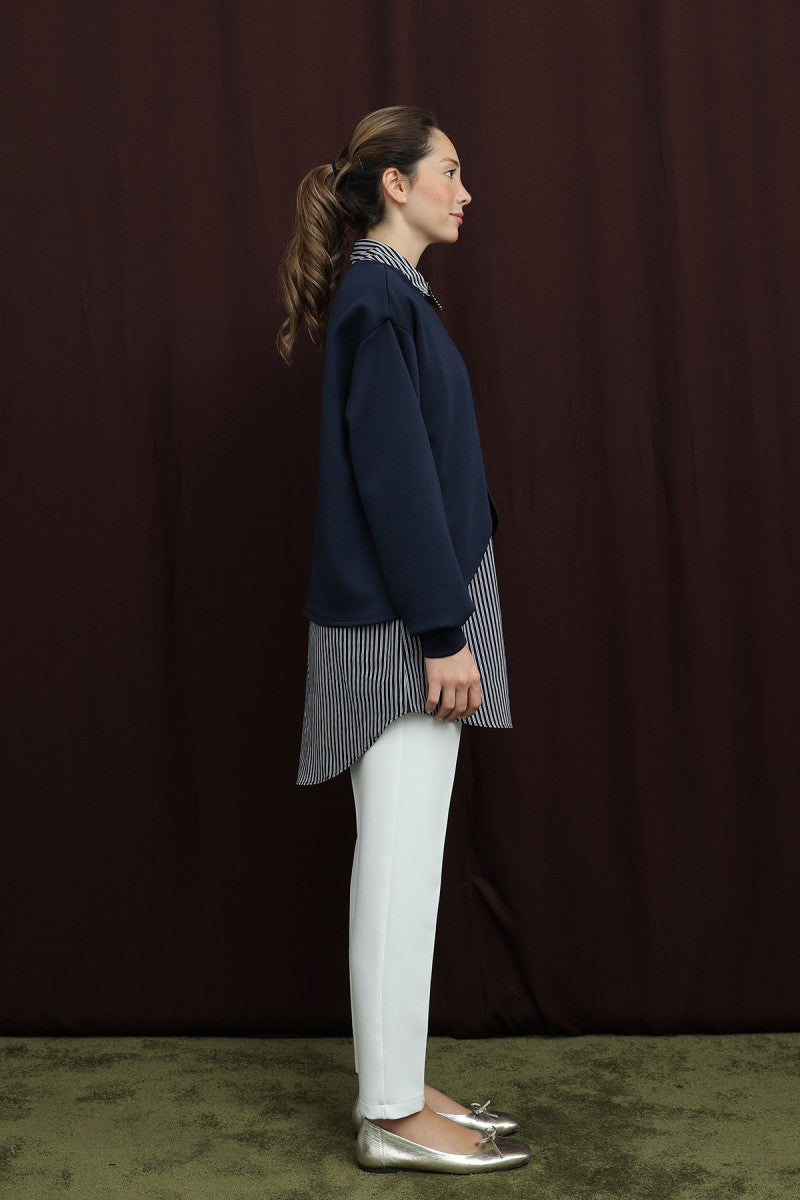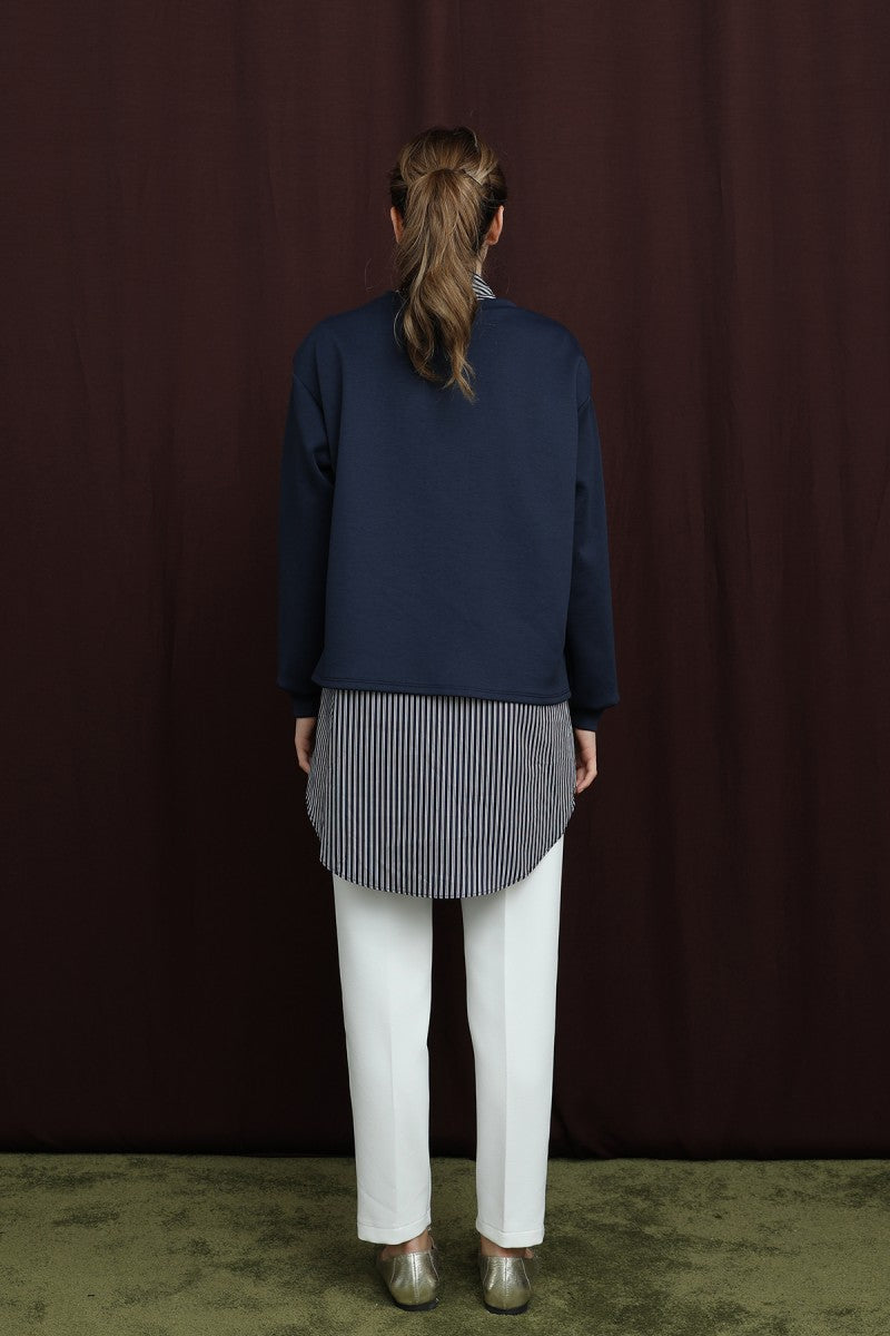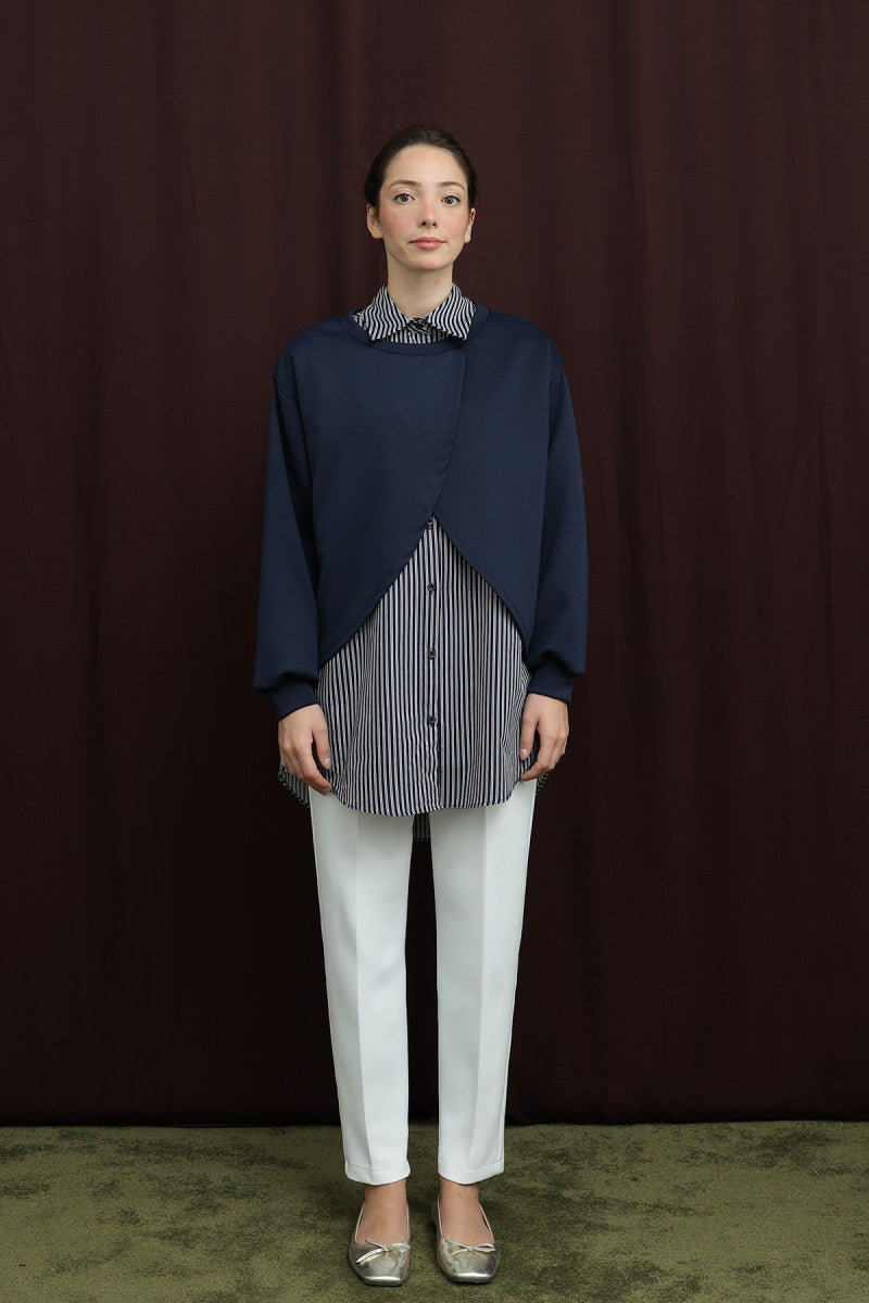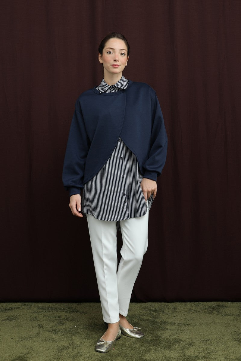 Modern çizgi detaylarıyla tasarlanan bu tunik, sade şıklığı ön plana çıkarır. Rahat kesimi sayesinde gün boyu konfor sunarken, hem günlük hem de şık kombinlerde sofistike bir görünüm sağlar.2610725