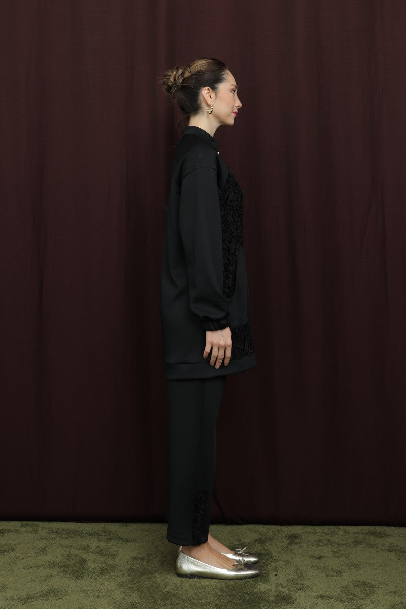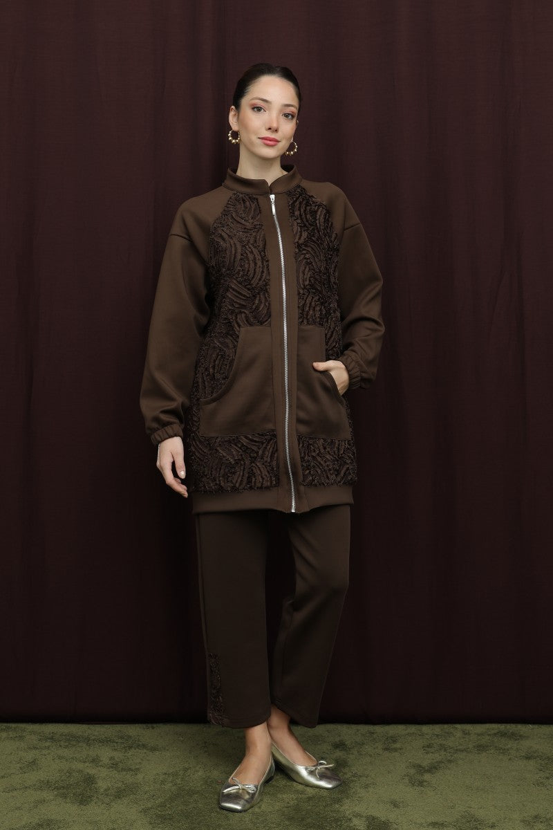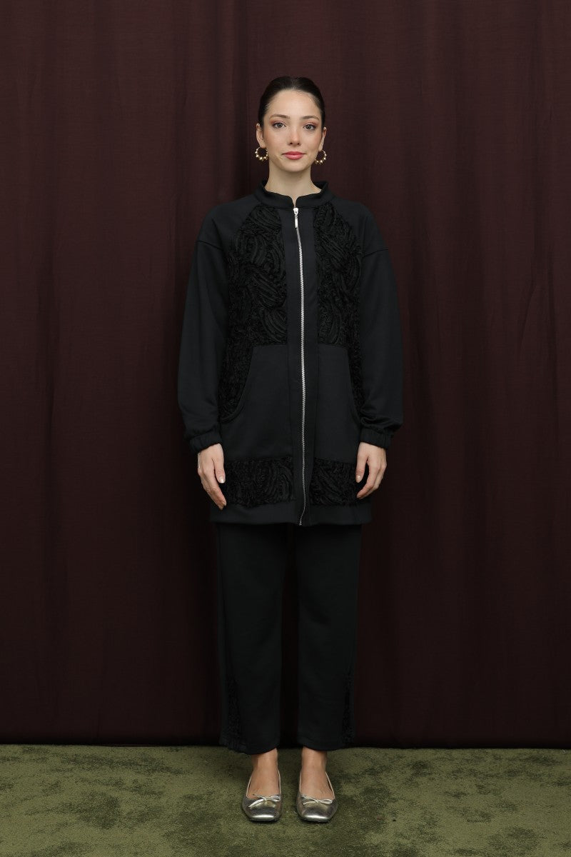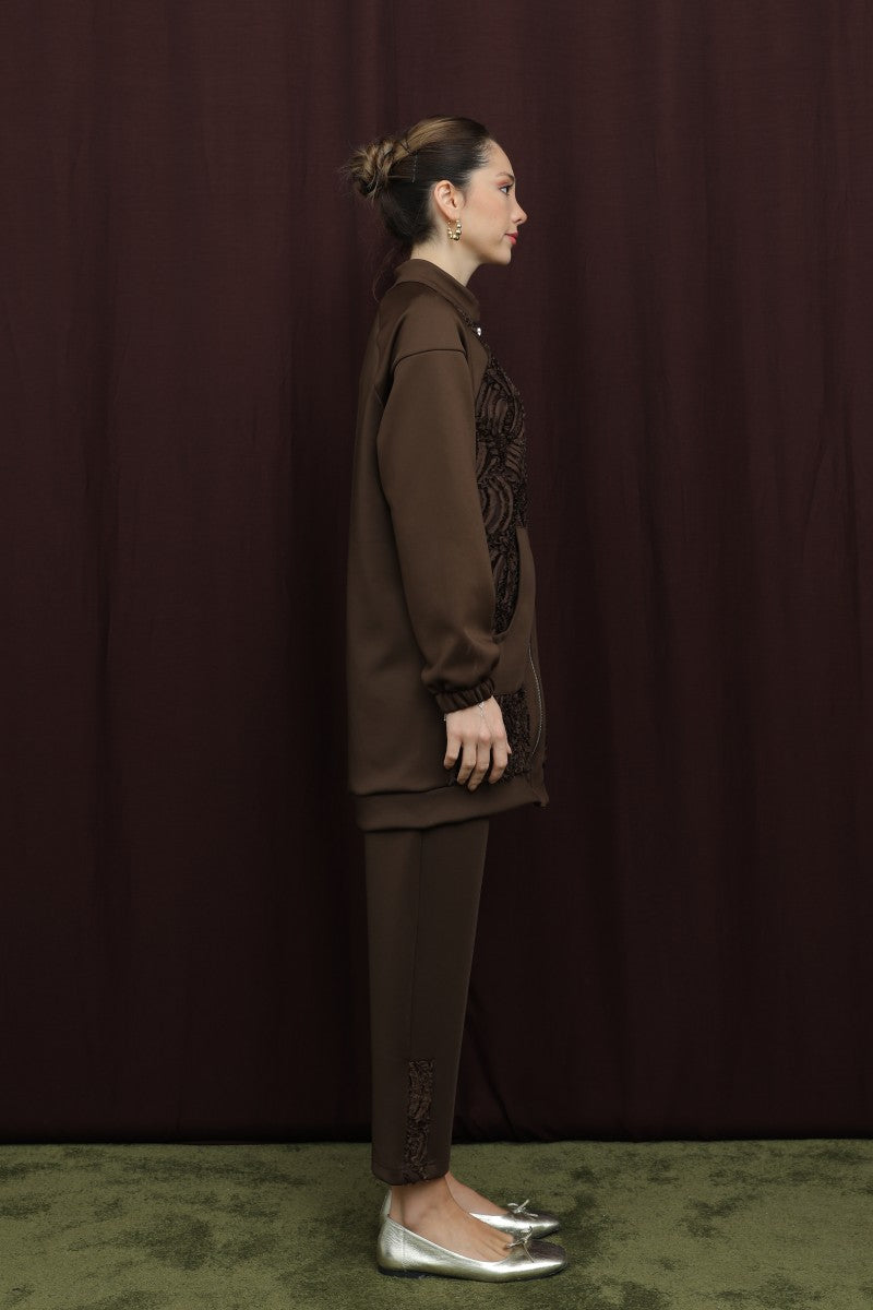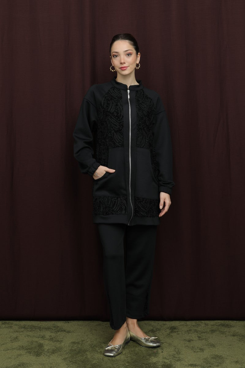Dantel Detaylı Hakim Yakalı Fermuarlı Takım