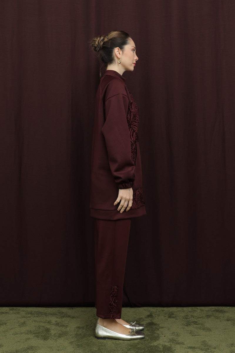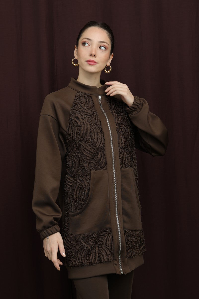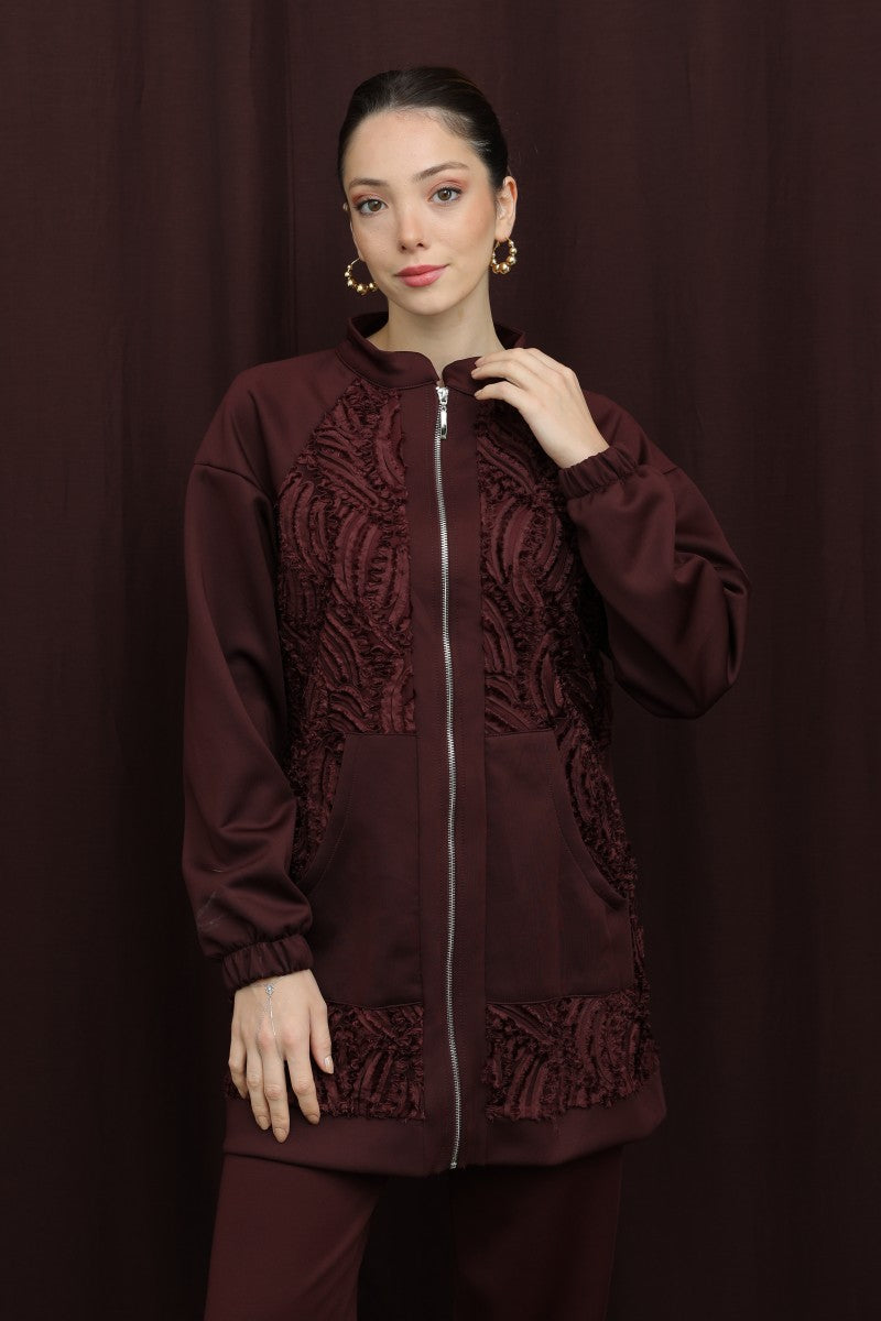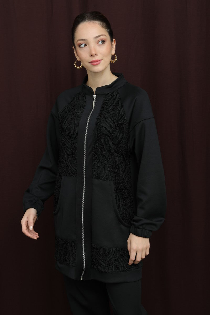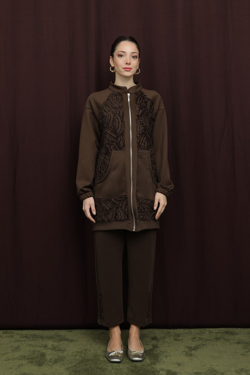 Dantel Detaylı Hakim Yakalı Fermuarlı Takım