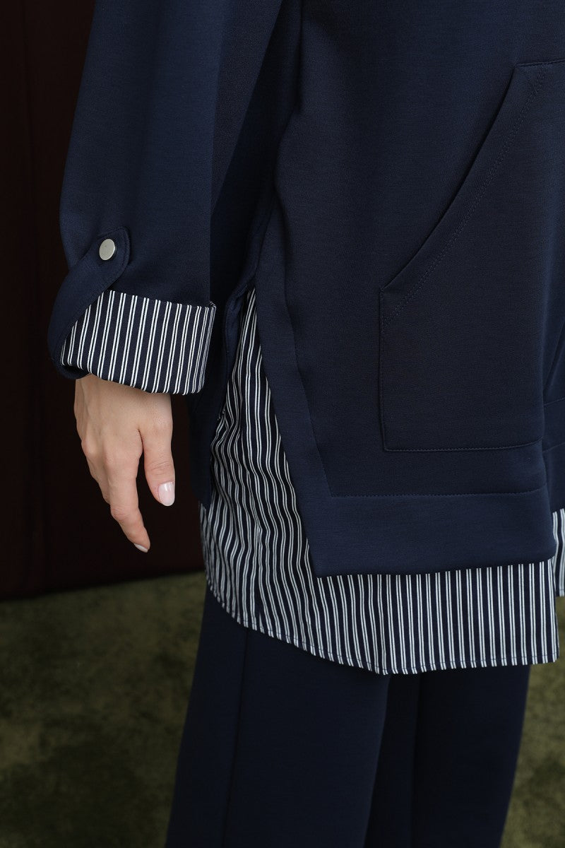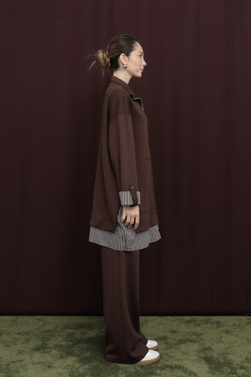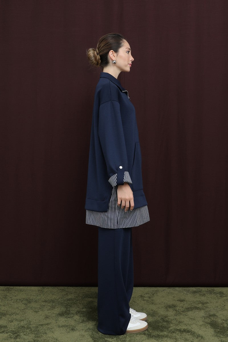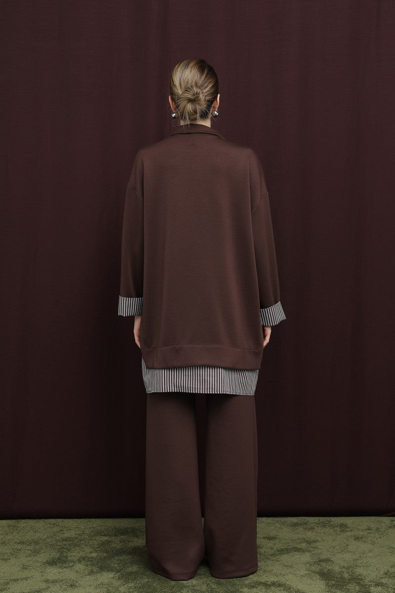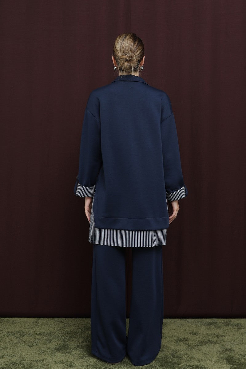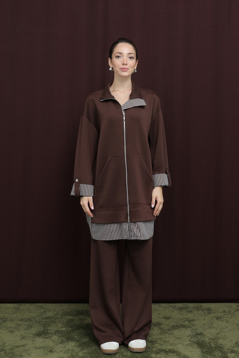 Şık garni detaylarıyla tasarımını öne çıkaran bu takım, modern formu ve konforlu yapısıyla zamansız bir şıklık sunar. Günlük kombinlerde rahat kullanım imkanı sağlarken, şehirli bir stil arayanlar için ideal bir seçimdir.2614383