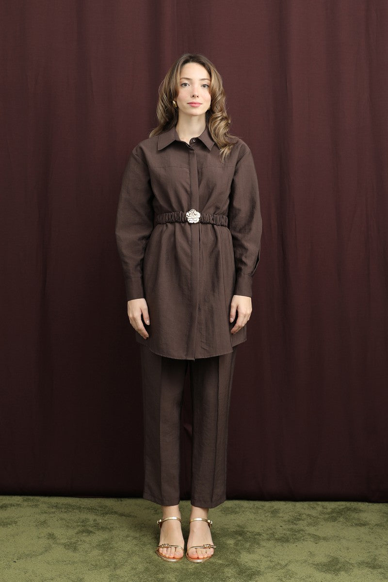 Gizli pat detayıyla sade, bel lastik kemeriyle rahat bir kullanım sunar. Hafif ve nefes alabilen kumaşı sayesinde günün her anında konfor sağlar, şık ve minimalist tasarımıyla çok yönlü kombin imkanı tanır.2614388
