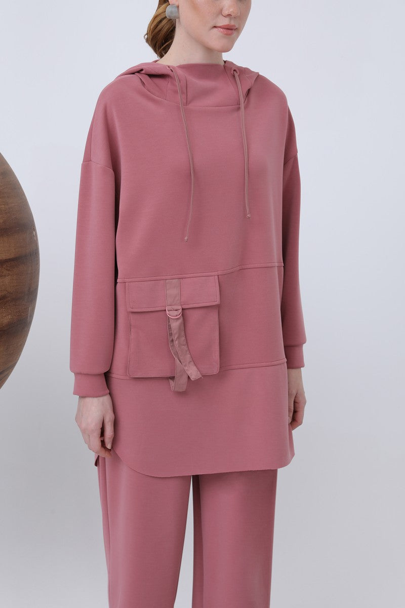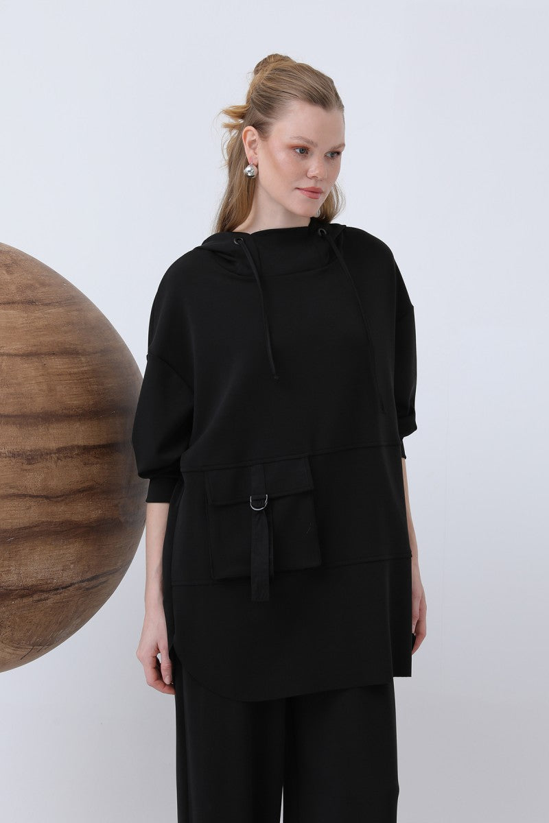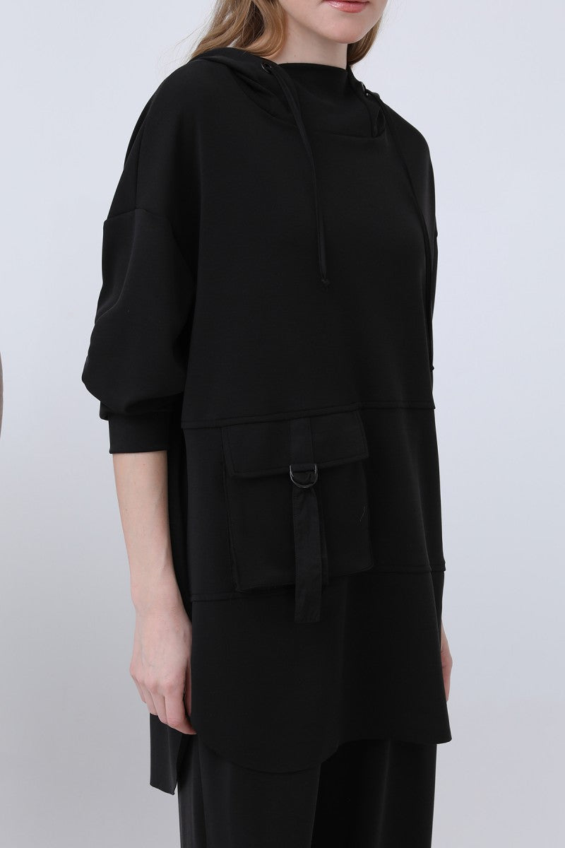 Önü Fermuar Detaylı Kapüşonlu Tunik