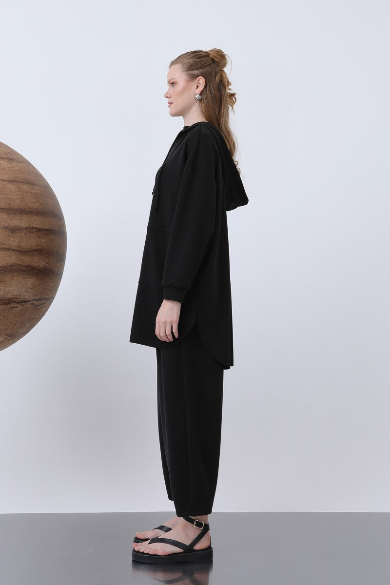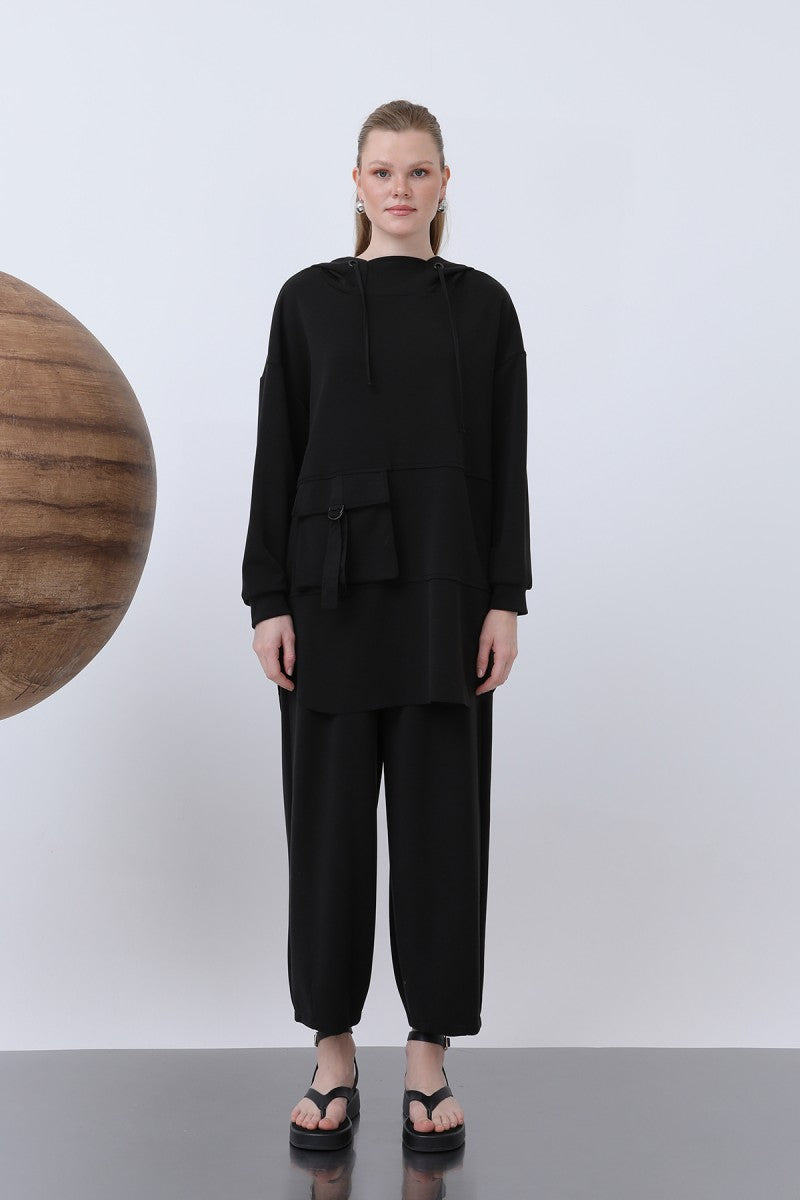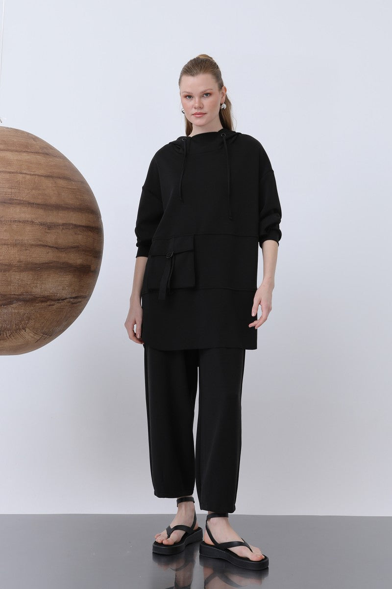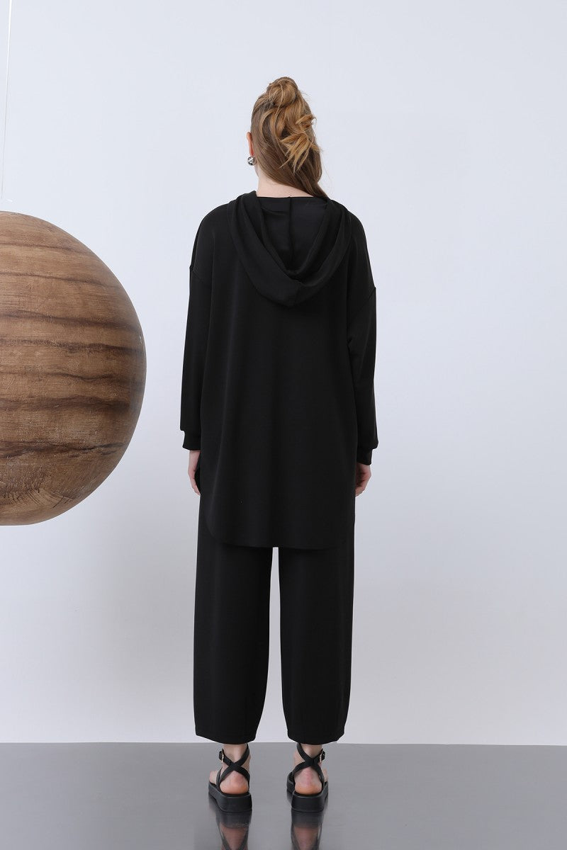 Önü Fermuar Detaylı Kapüşonlu Tunik