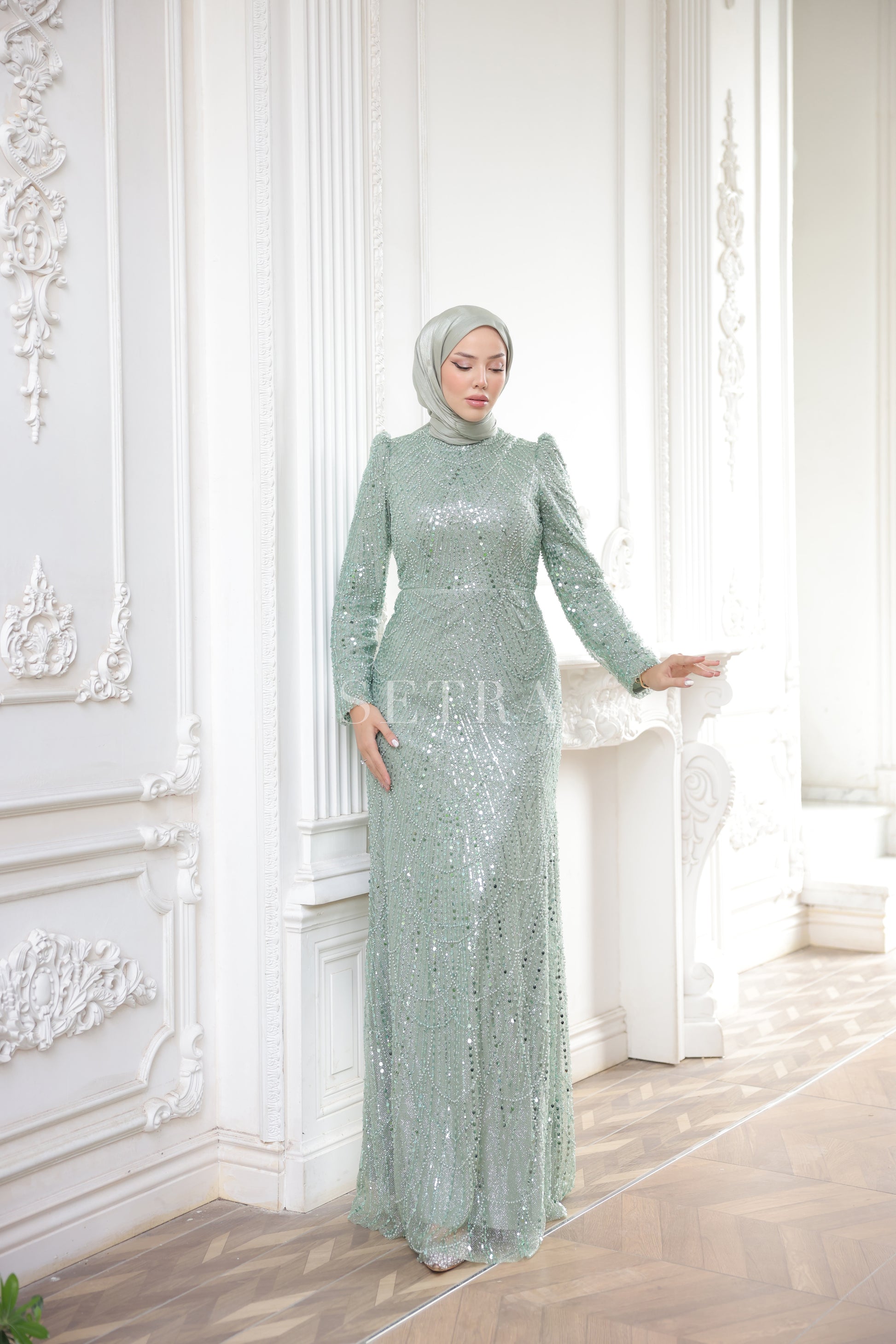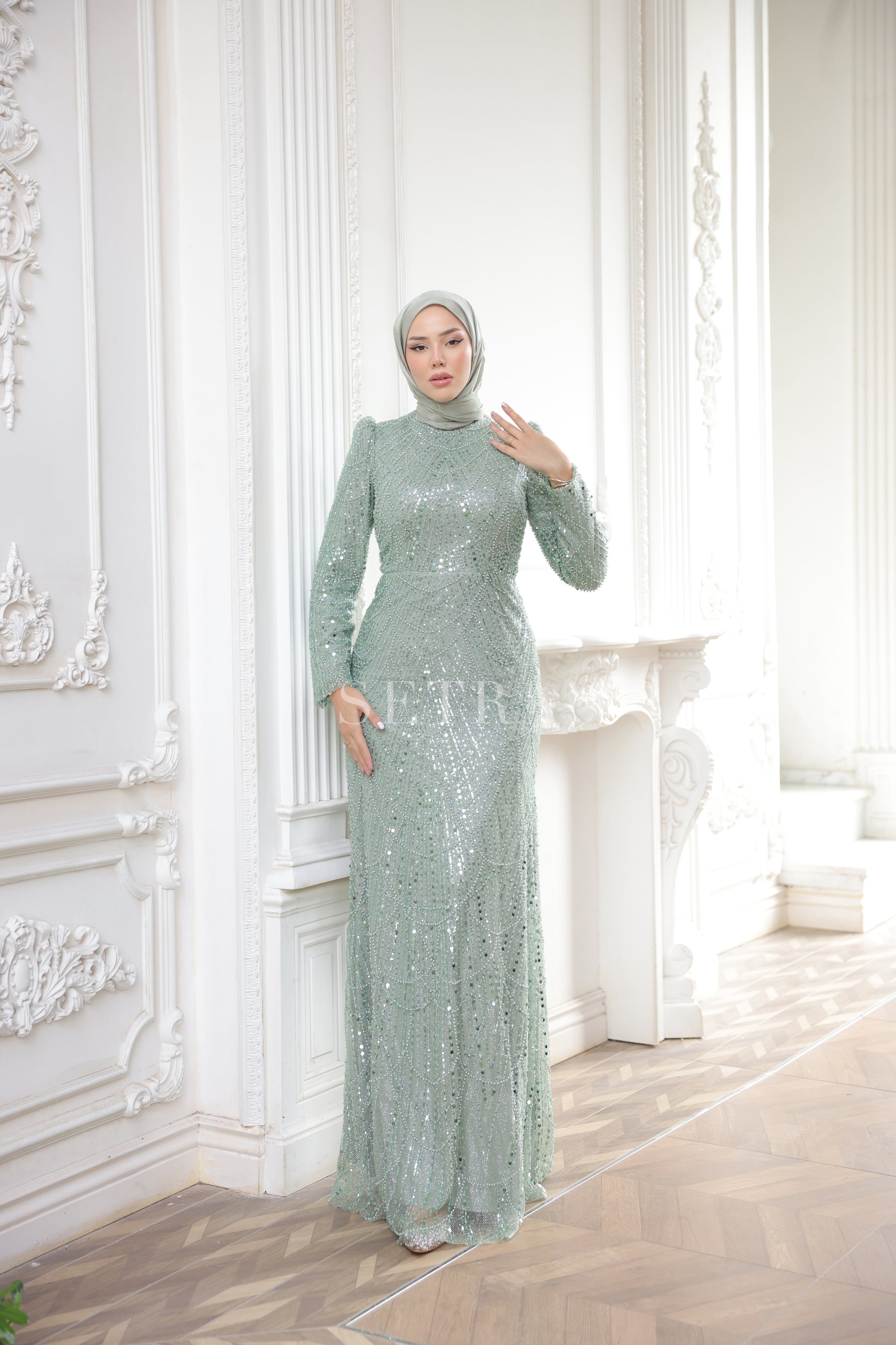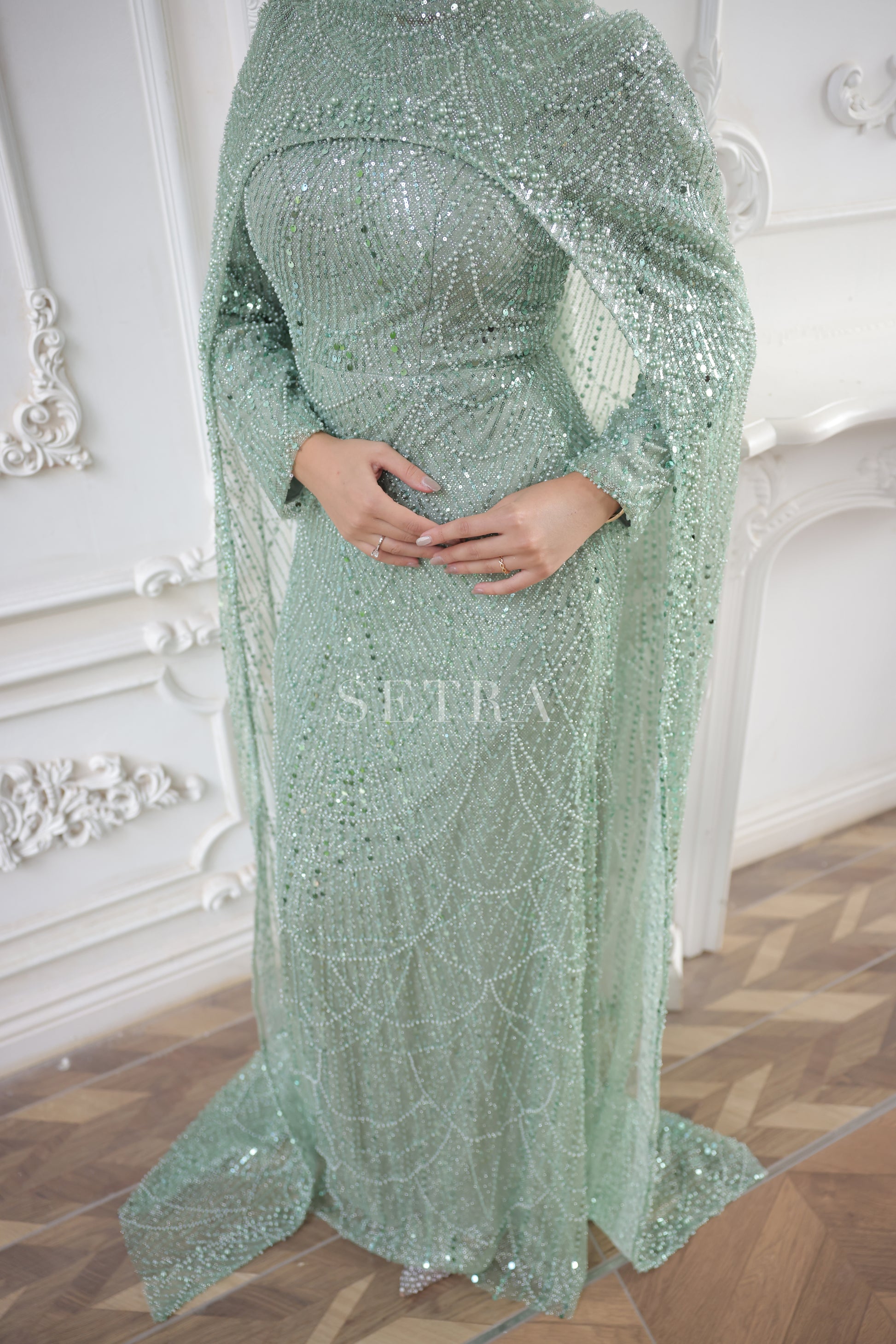 Özel Tasarım Pelerinli Abiye – Mint Yeşili
