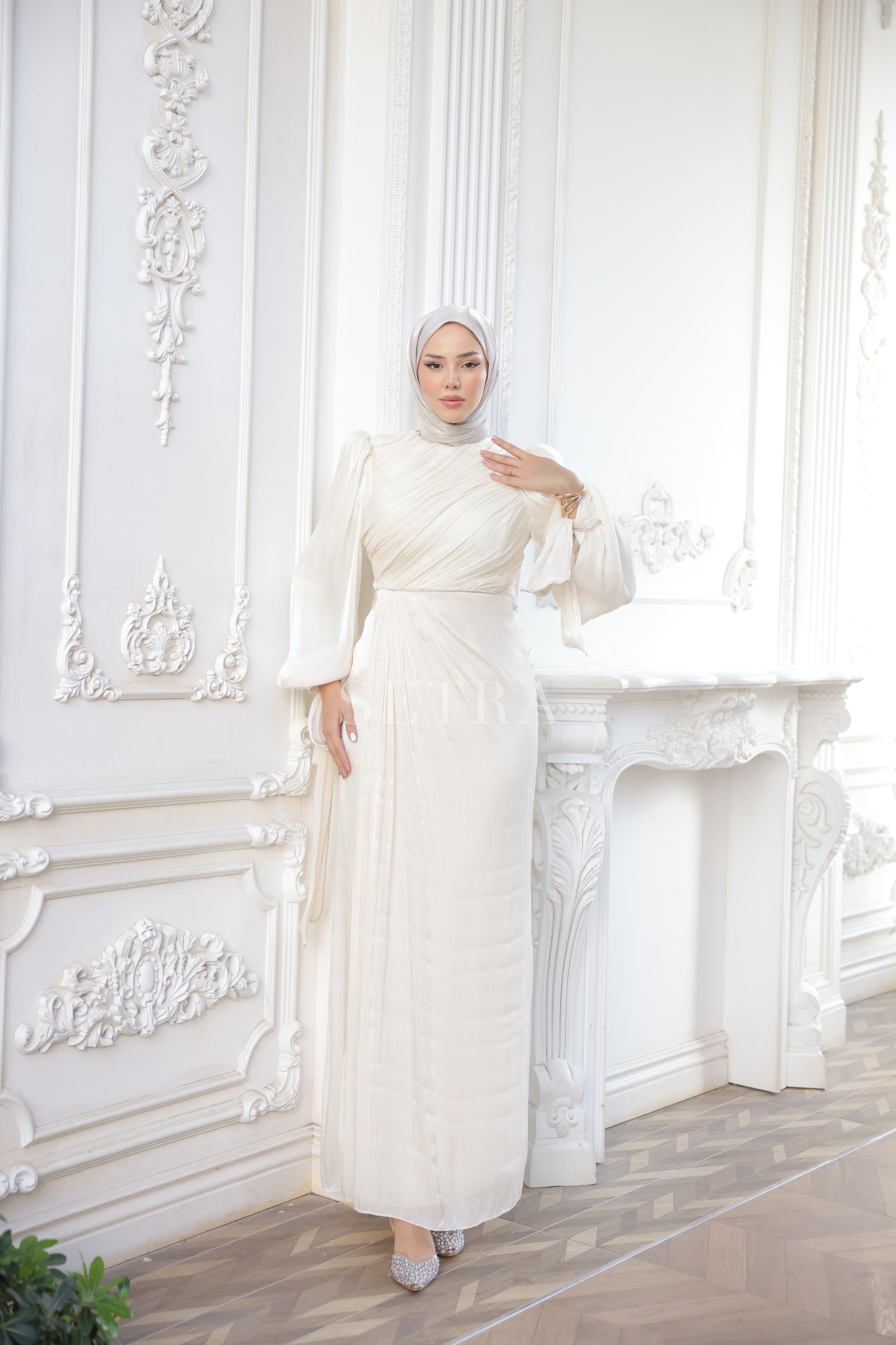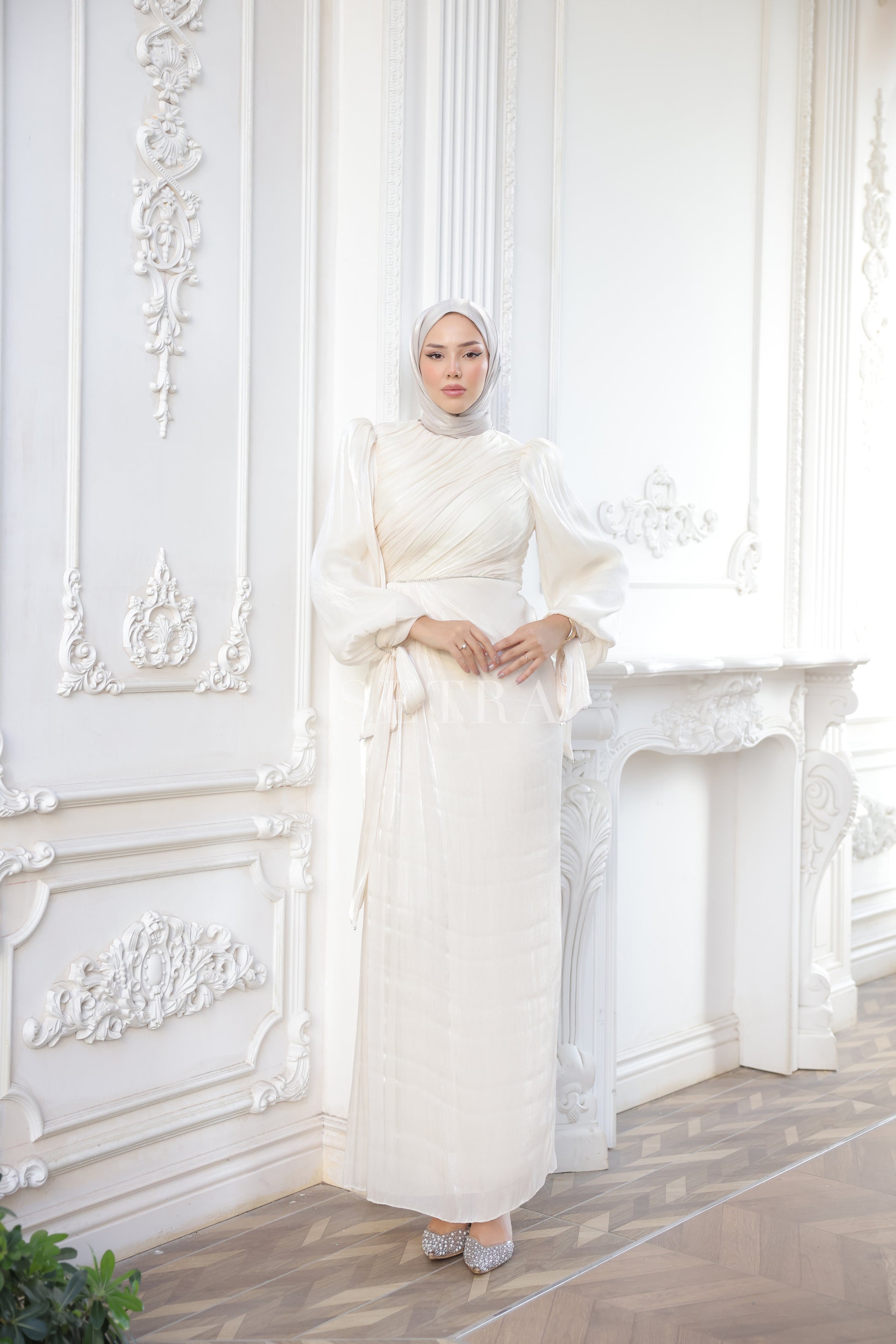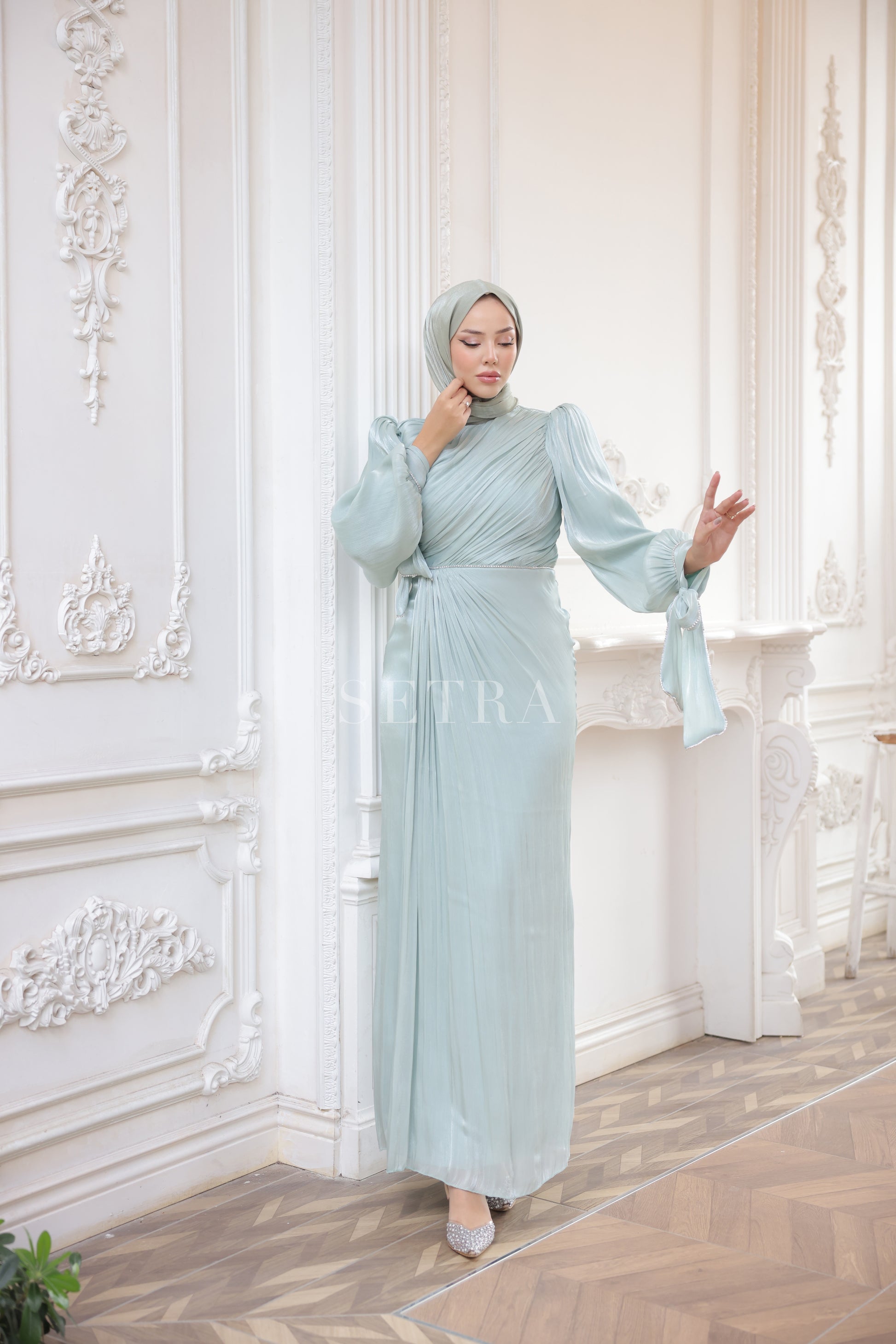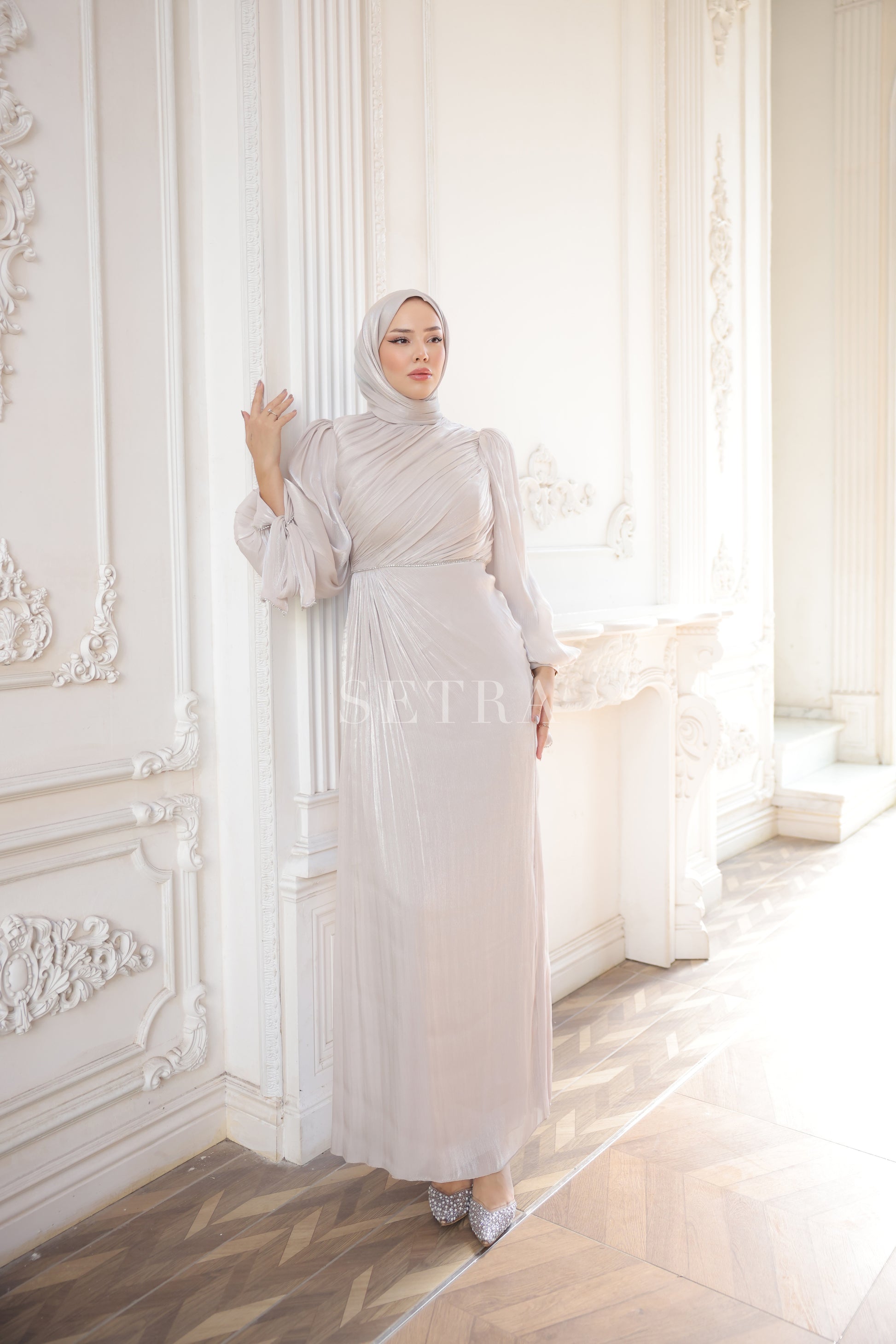 Şıklığı ve konforu bir araya getiren bu tesettür abiye elbise, özel günleriniz için zarif bir tercih sunuyor. Pileli ve akıcı kumaşı modern bir görünüm sağlarken, bel kısmındaki kuşak detayı vücut hatlarını zarifçe ön plana çıkarıyor. Uzun kollu ve kapalı yaka tasarımıyla tesettür modasına uygun olan bu abiye, düğün, nişan, davet ve tüm özel kutlamalarda stilinizi tamamlayacak göz alıcı bir parçadır.