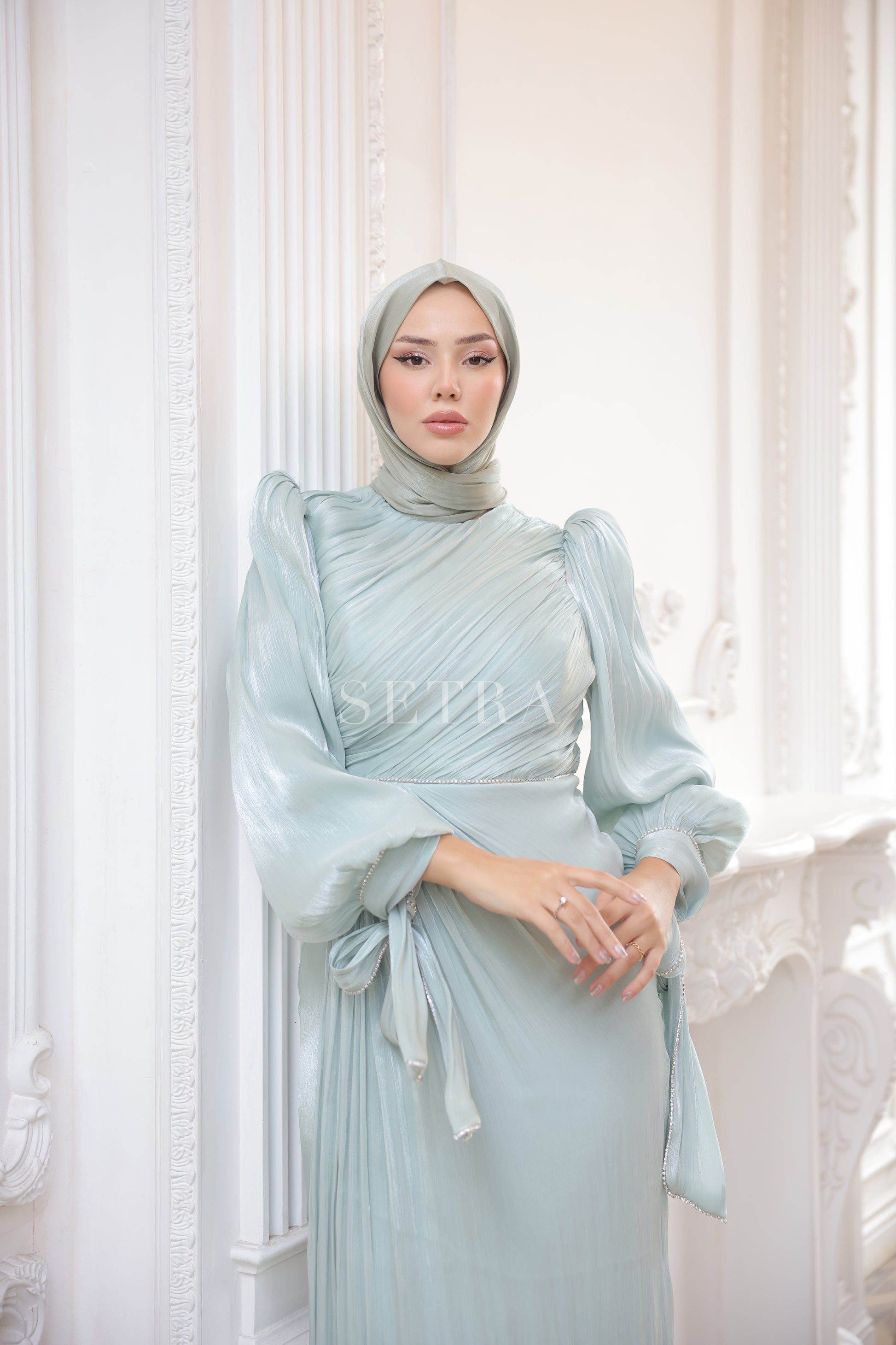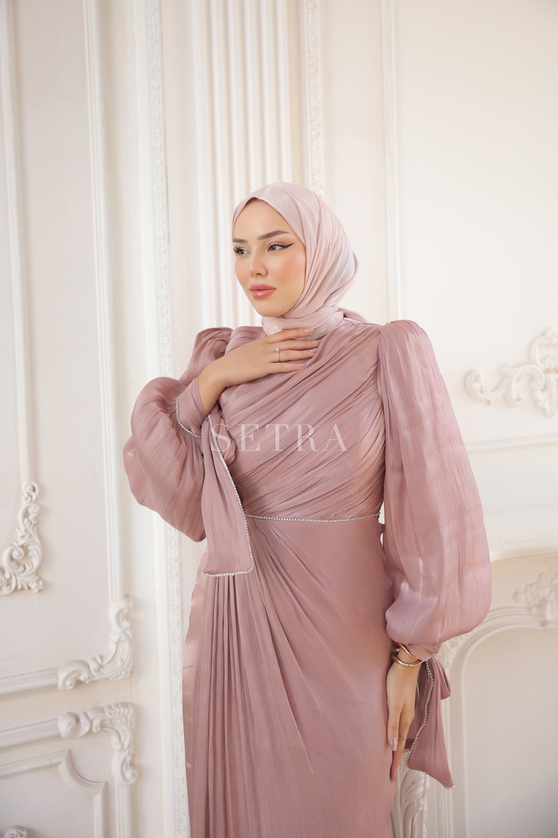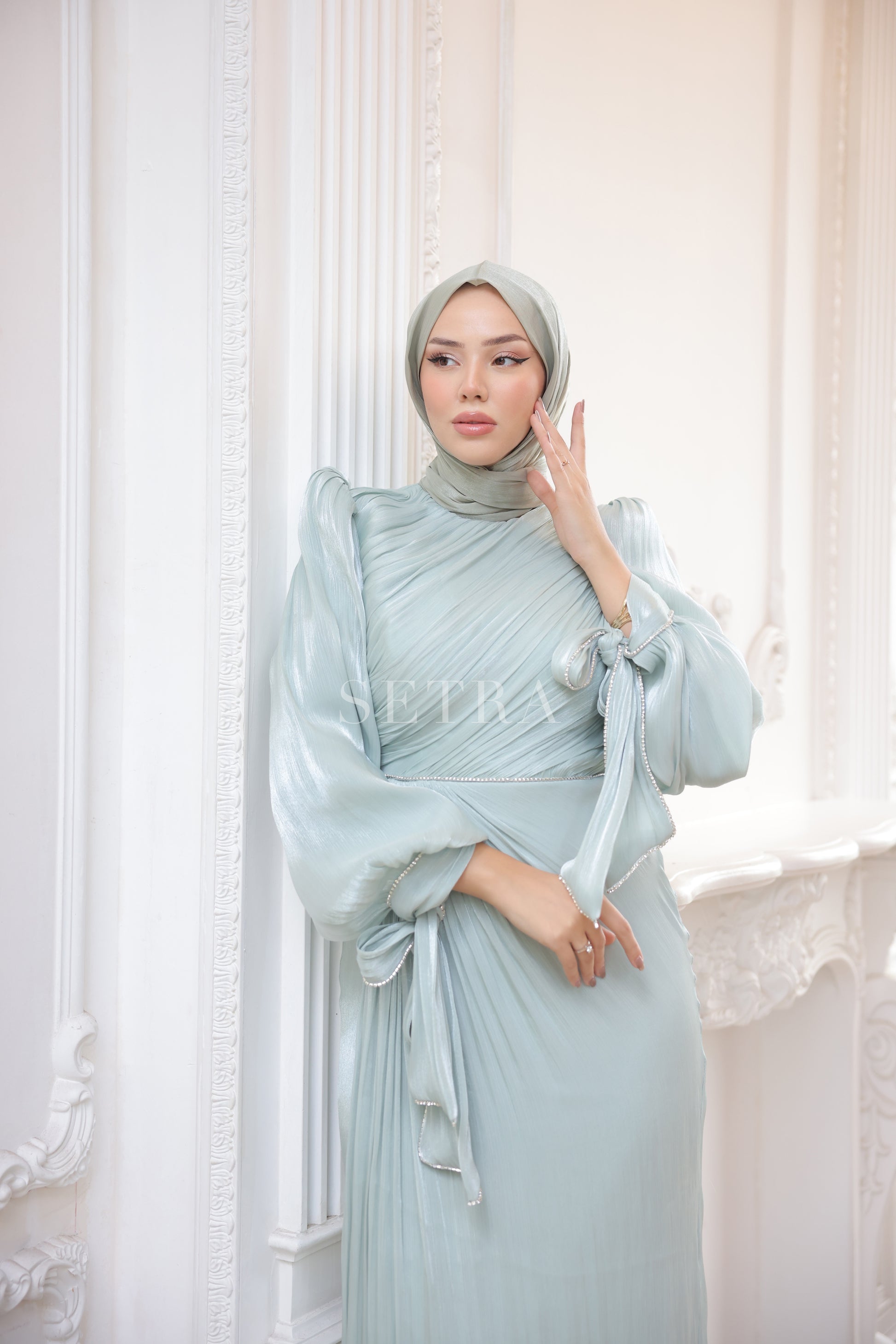 Zarif Taş Detaylı Tesettür Abiye Elbise
